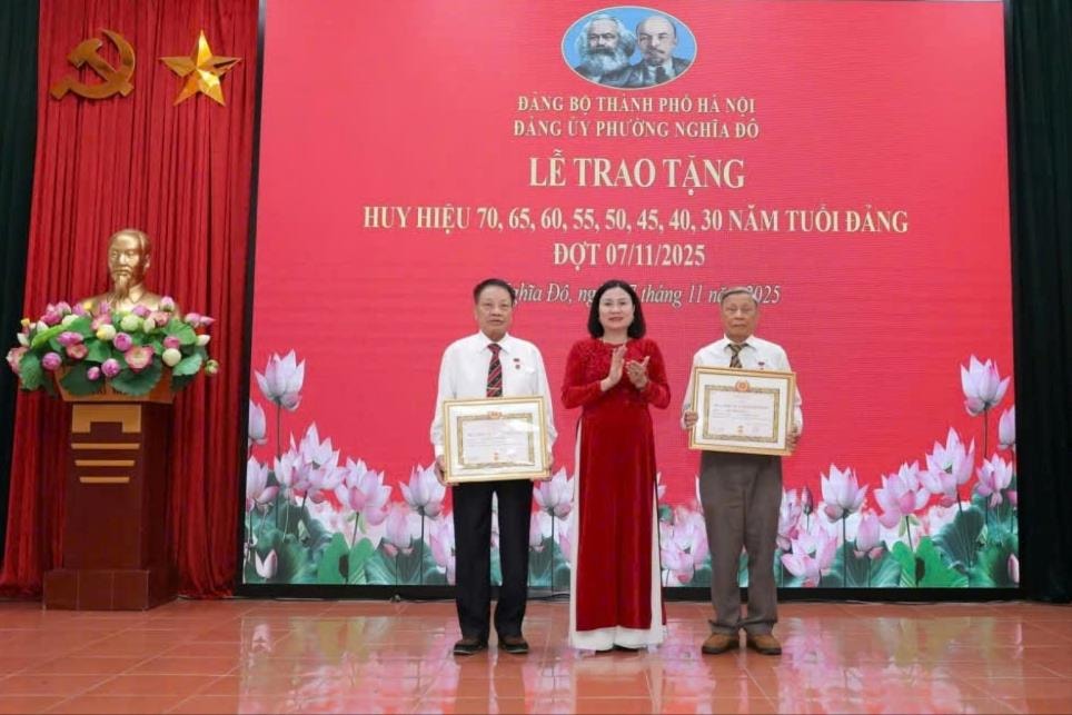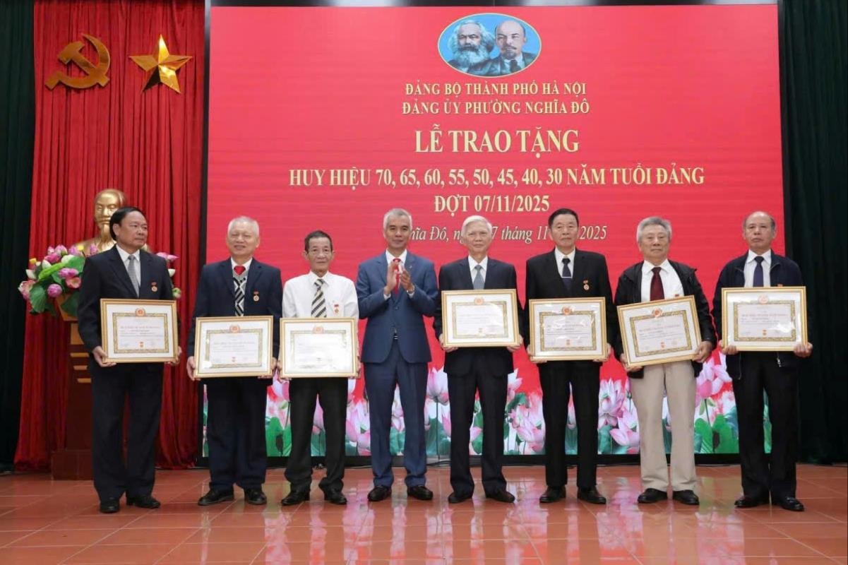 Đợt này, phường Nghĩa Đô có 1 đảng viên được nhận Huy hiệu 70 năm tuổi Đảng; 4 đảng viên nhận Huy hiệu 65 năm tuổi Đảng; 32 đồng chí nhận Huy hiệu 60 năm tuổi Đảng; 2 đồng chí nhận Huy hiệu 55 năm tuổi Đảng; 18 đồng chí nhận Huy hiệu 50 năm tuổi Đảng; 33 đồng chí nhận Huy hiệu 45 năm tuổi Đảng; 30 đồng chí nhận Huy hiệu 40 năm tuổi Đảng và 24 đồng chí nhận Huy hiệu 30 năm tuổi Đảng.