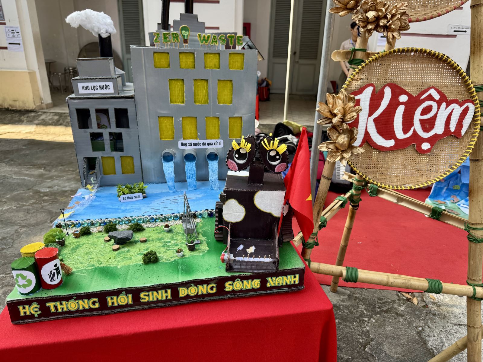 Mô hình trưng bày các giải pháp môi trường xanh của học sinh thành phố.