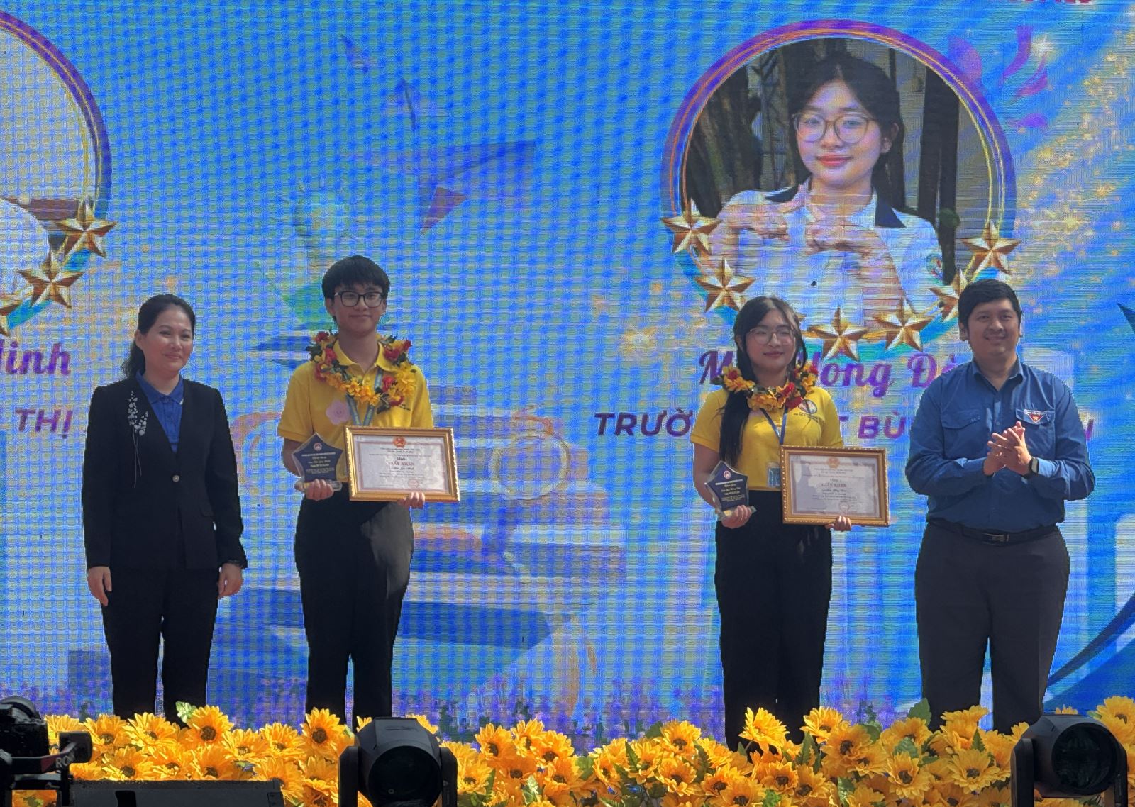 Đại diện Sở Giáo dục và Đào tạo TP Hồ Chí Minh và Thành đoàn TP Hồ Chí Minh khen thưởng các em học sinh tiêu biểu trong học tập và làm theo tư tưởng, đạo đức, phong cách Hồ Chí Minh.