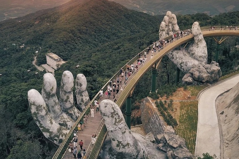 Cầu Vàng trên Bà Nà Hills, với hai bàn tay đá khổng lồ nâng lối đi, được tác giả gọi là trải nghiệm “đáng nhớ suốt đời”.