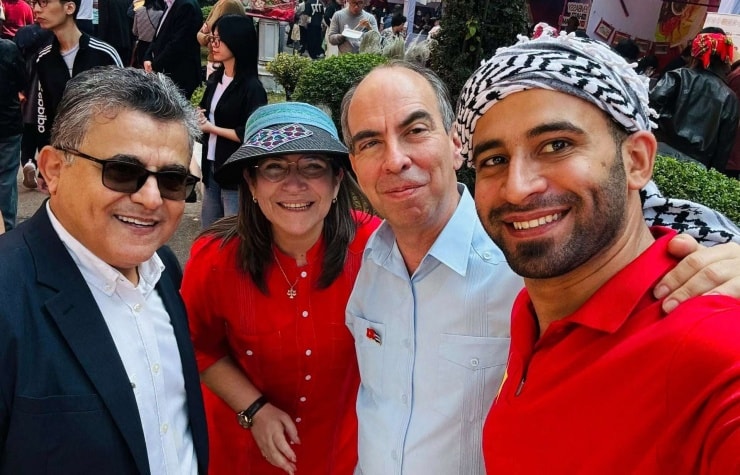 Vị du khách quốc tế Saleem chụp ảnh cùng vợ chồng Đại sứ Cuba trong một sự kiện ngoại giao.