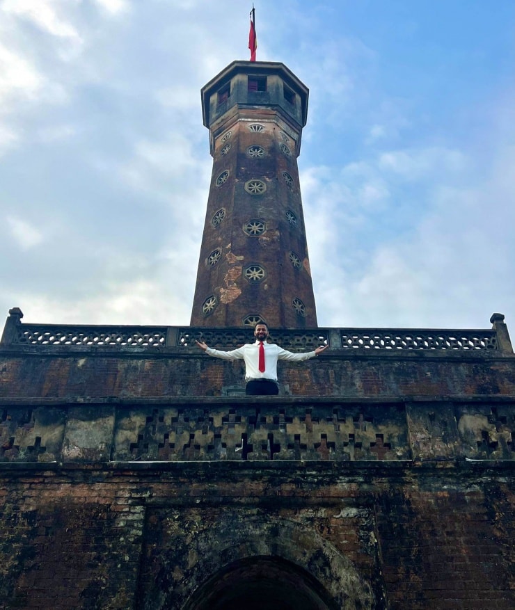 Saleem Hammad chụp ảnh kỷ niệm tại Cột cờ Hà Nội, nơi anh coi là quê hương thứ hai.