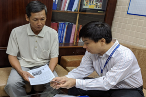 ThS Lê Minh Hiển – Trưởng phòng Công tác xã hội, Bệnh viện Chợ Rẫy tư vấn, hỗ trợ cho người nhà bệnh nhân mua BHYT