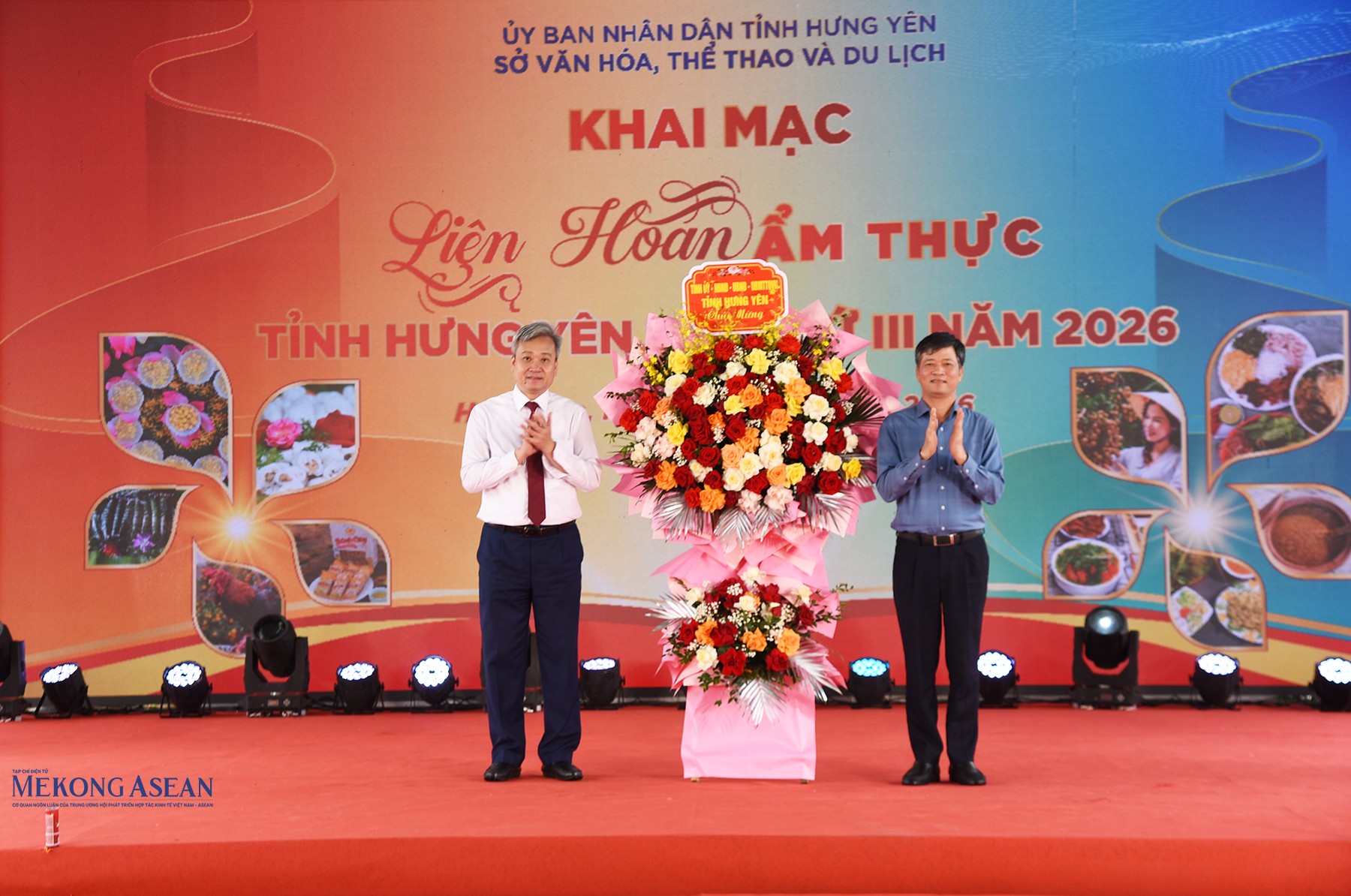 Ông Lê Xuân Tiến, Ủy viên Ban Thường vụ Tỉnh ủy, Phó Chủ tịch Thường trực HĐND tỉnh Hưng Yên tặng hoa chúc mừng sự kiện. Ảnh: Mekong ASEAN.