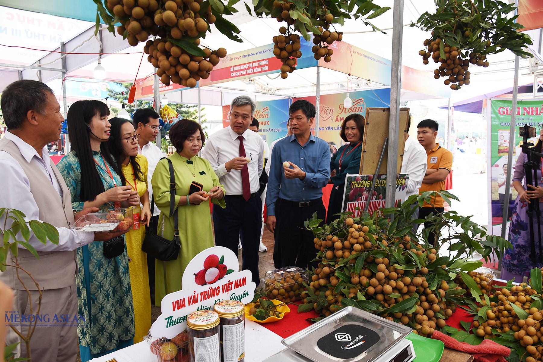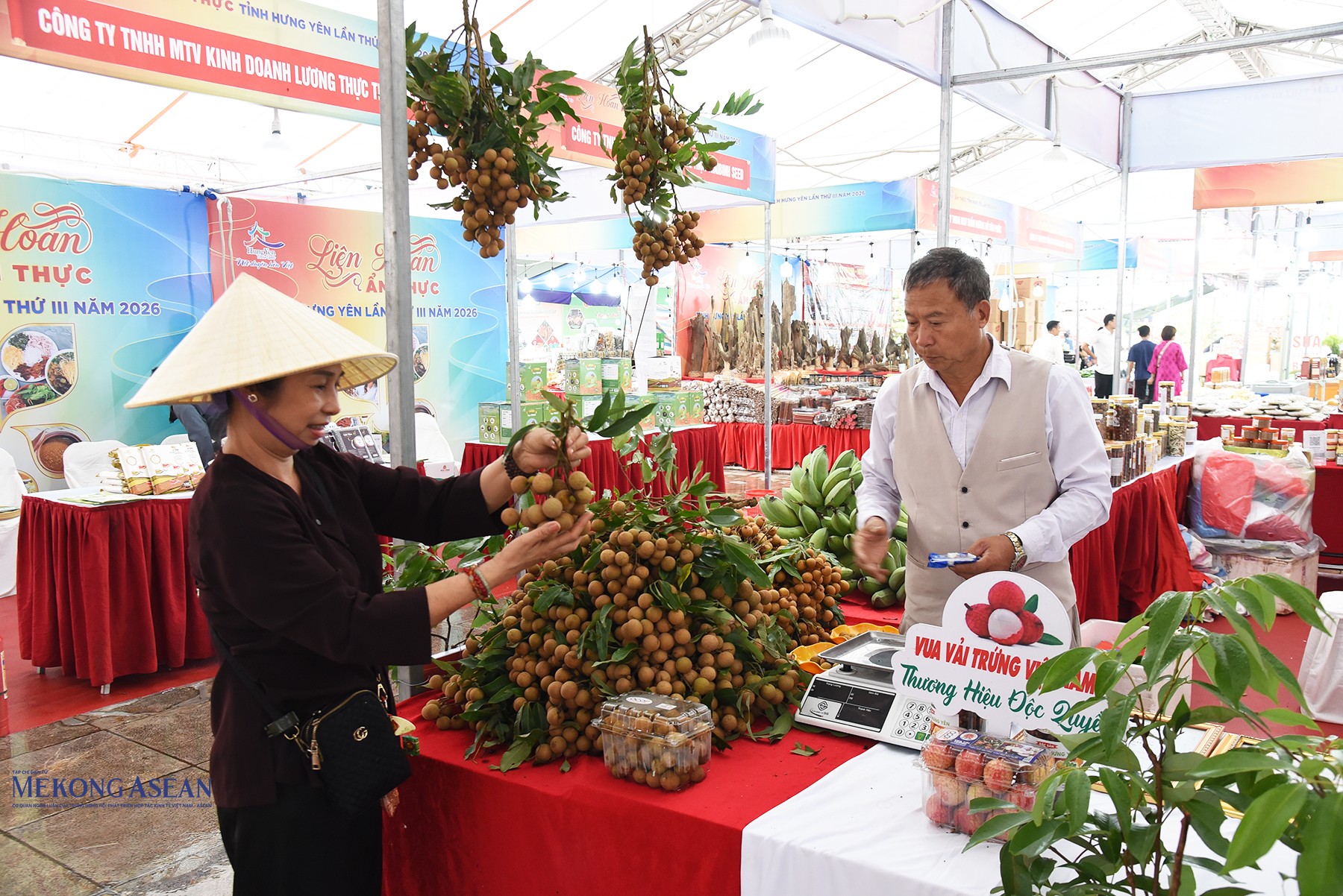 Sản phẩm nhãn lồng và vải trứng Hưng Yên - đặc sản của vùng đất “tiểu Tràng An” được trưng bày, bán tại liên hoan. Ảnh: Mekong ASEAN.