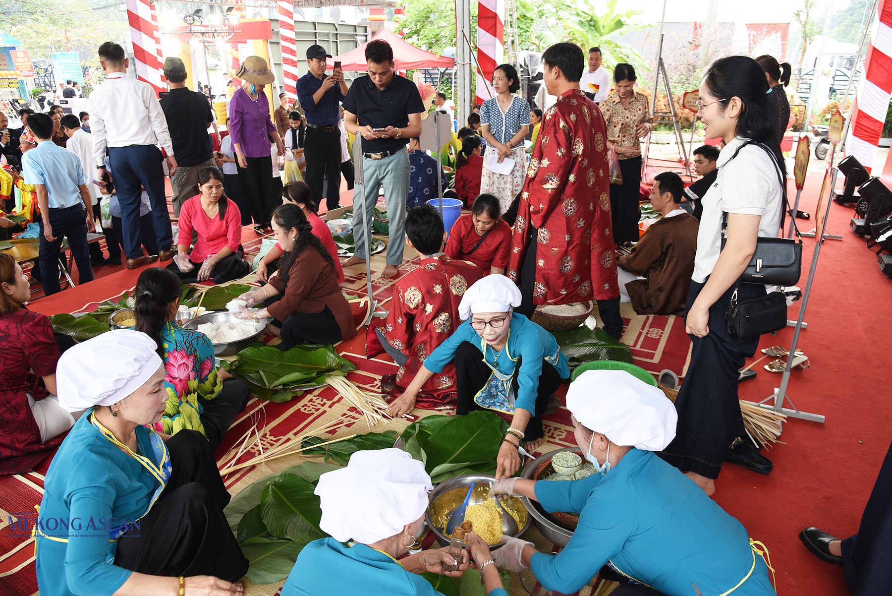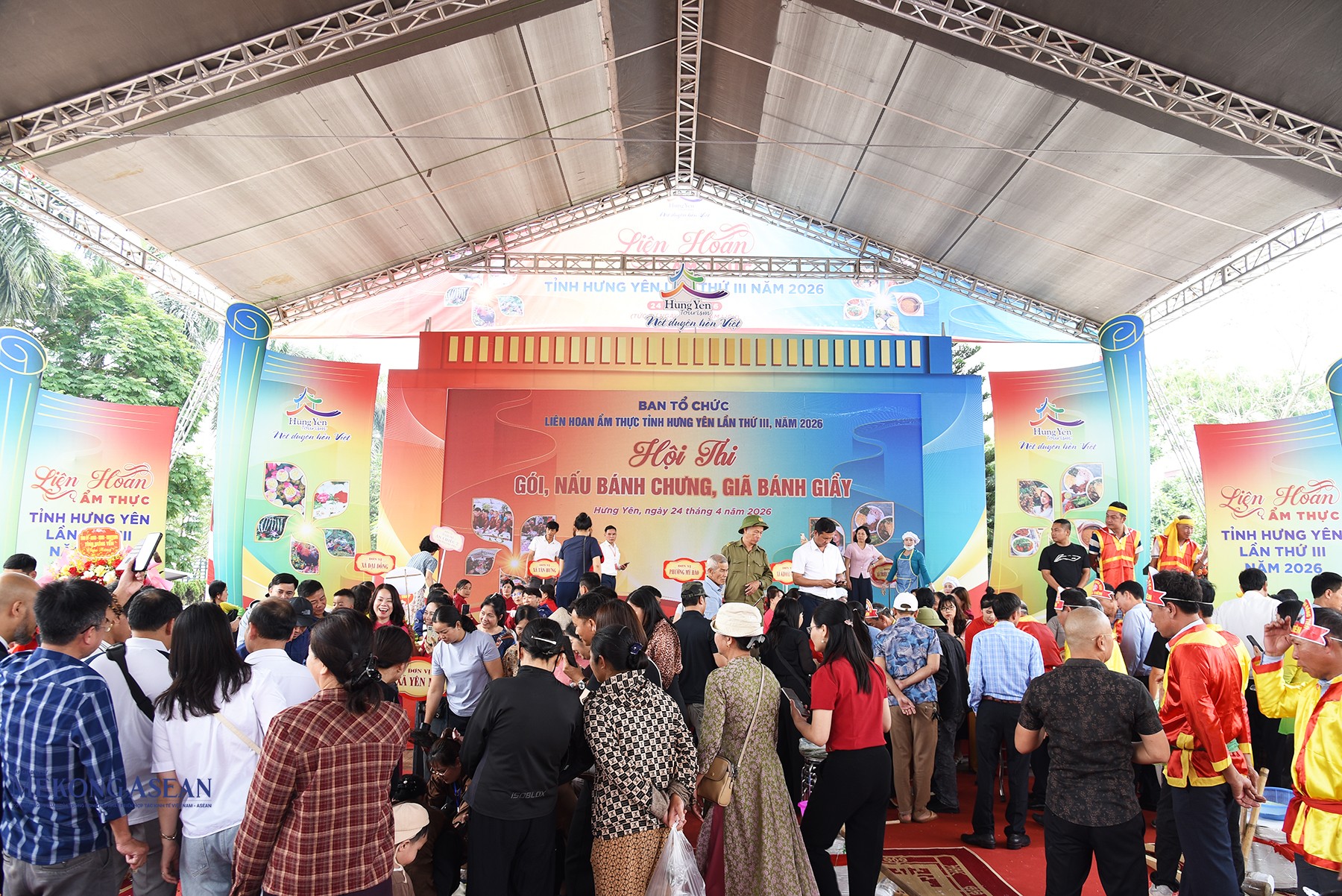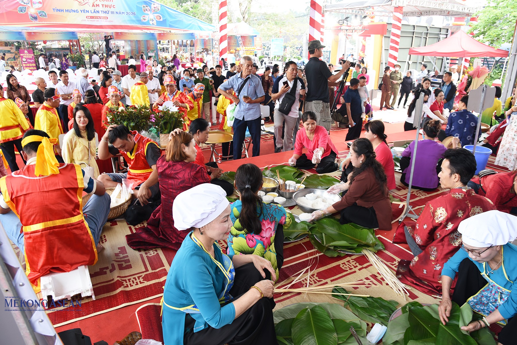 Ngay sau khai mạc diễn ra Hội thi gói nấu bánh chưng, giã bánh giầy tại Liên hoan ẩm thực tỉnh Hưng Yên lần thứ III năm 2026. Ảnh: Mekong ASEAN.