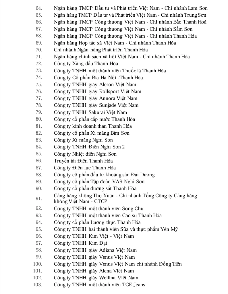 Danh sách cụ thể như sau: