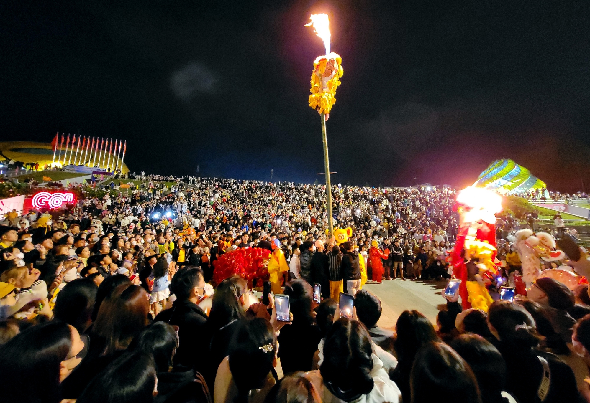 Biểu diễn múa lân sư tại quảng trường Lâm Viên.