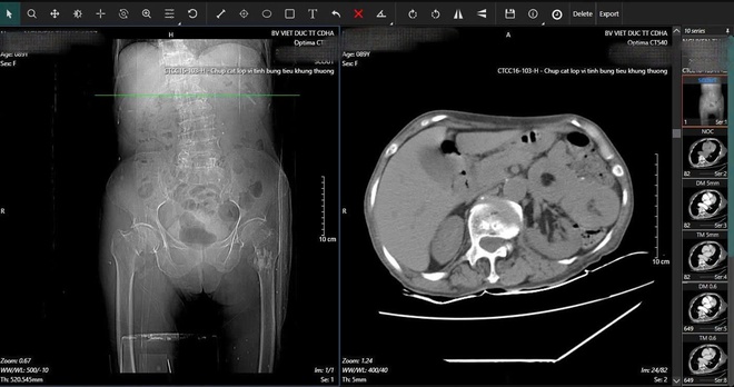 Trong quá trình kiểm tra tổng quát, các bác sĩ BV Hữu nghị Việt Đức phát hiện dấu hiệu bất thường ở vùng bụng. Kết quả chụp CT cho thấy cụ bị lồng ruột do u với khối lồng dài 165mm. Đây là tình trạng cấp cứu nguy hiểm, có thể gây tắc ruột và đe dọa tính mạng nếu không xử lý kịp thời.