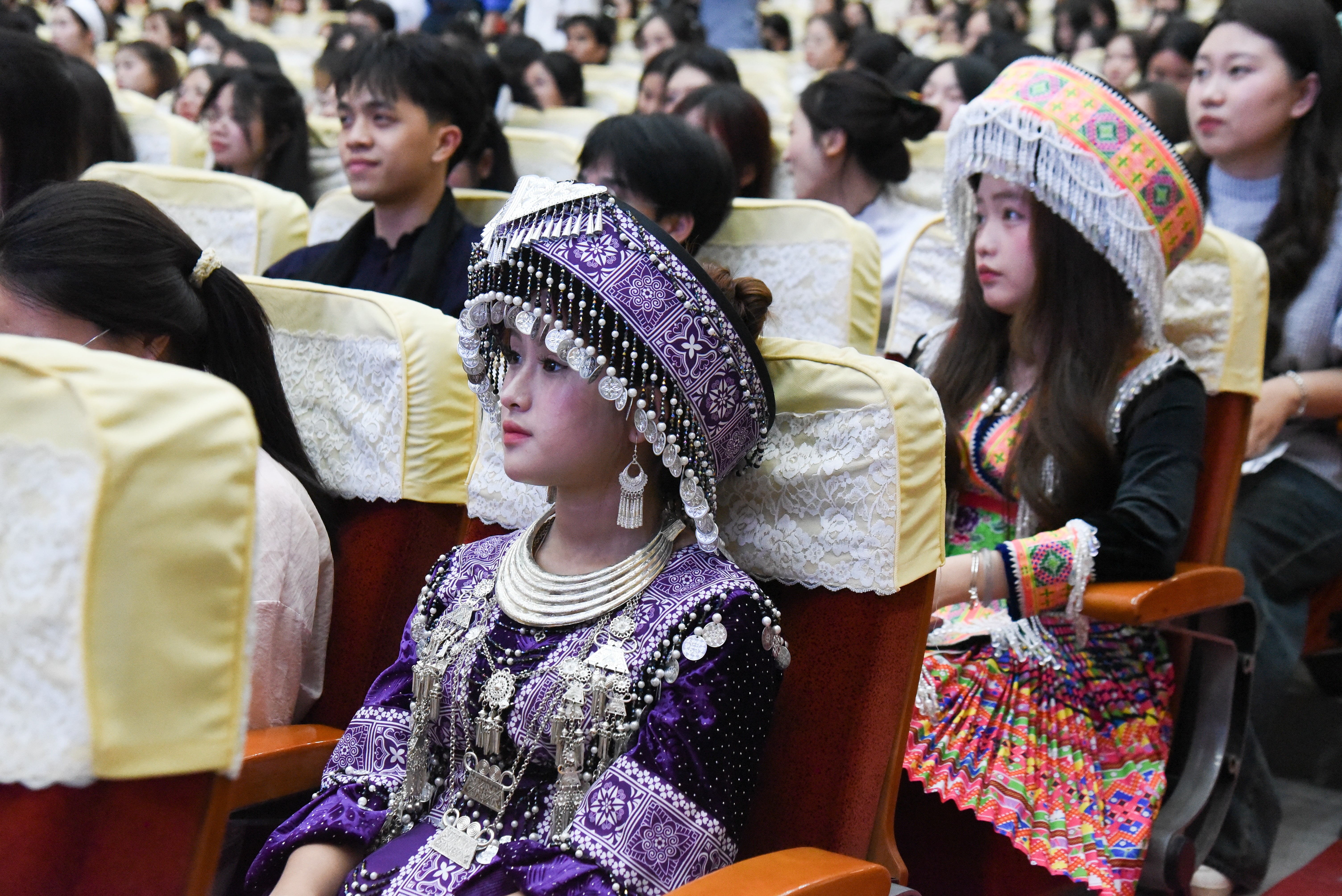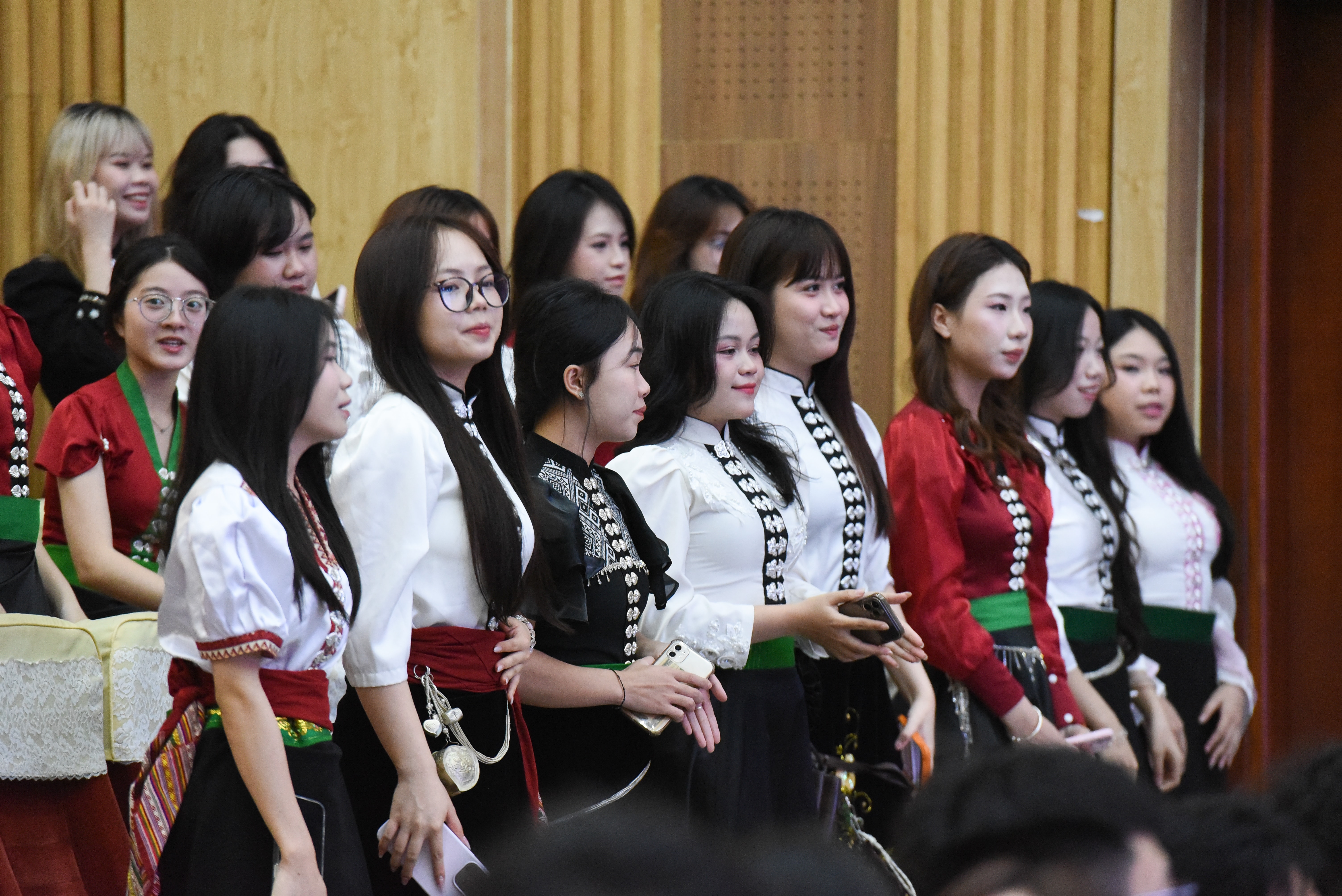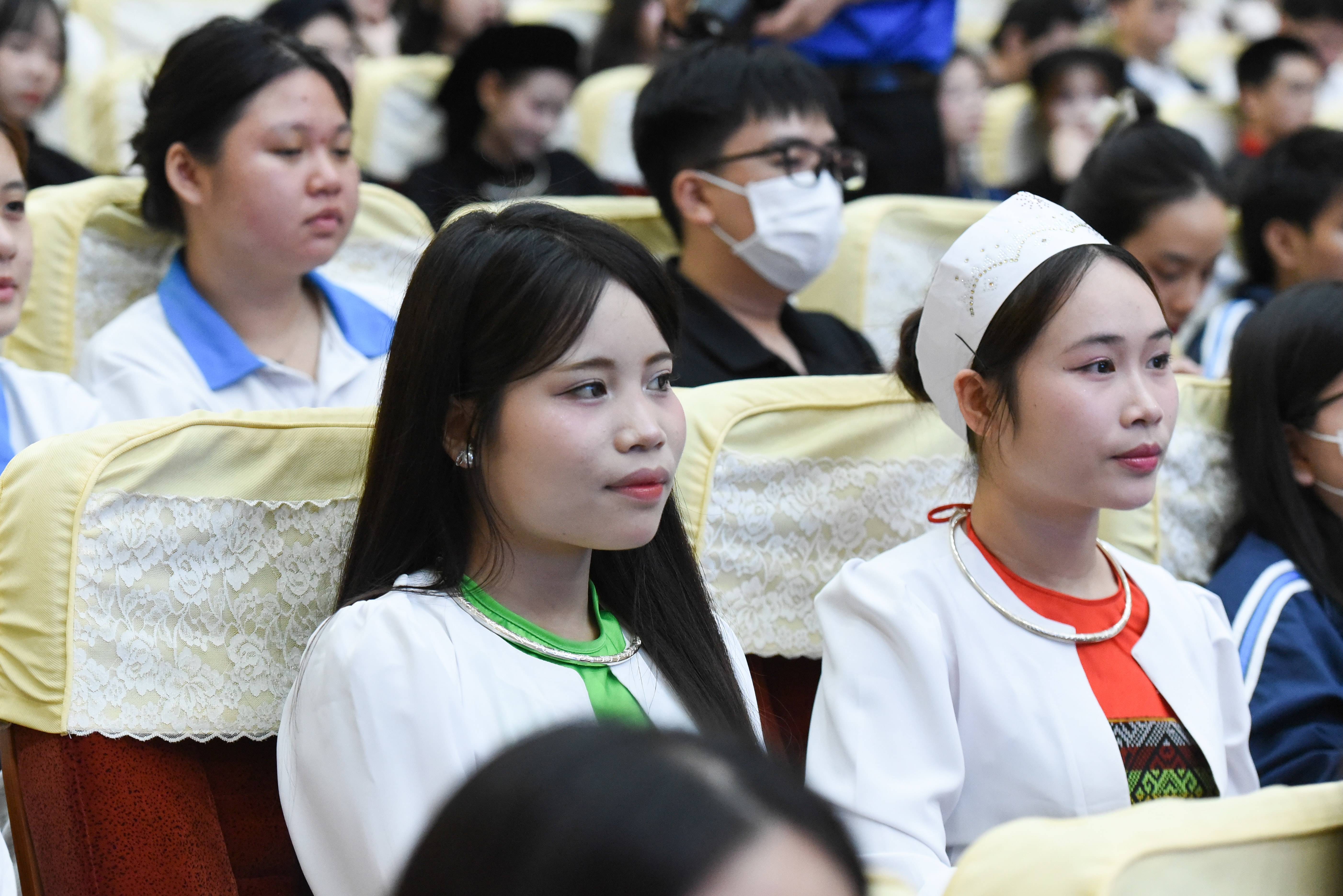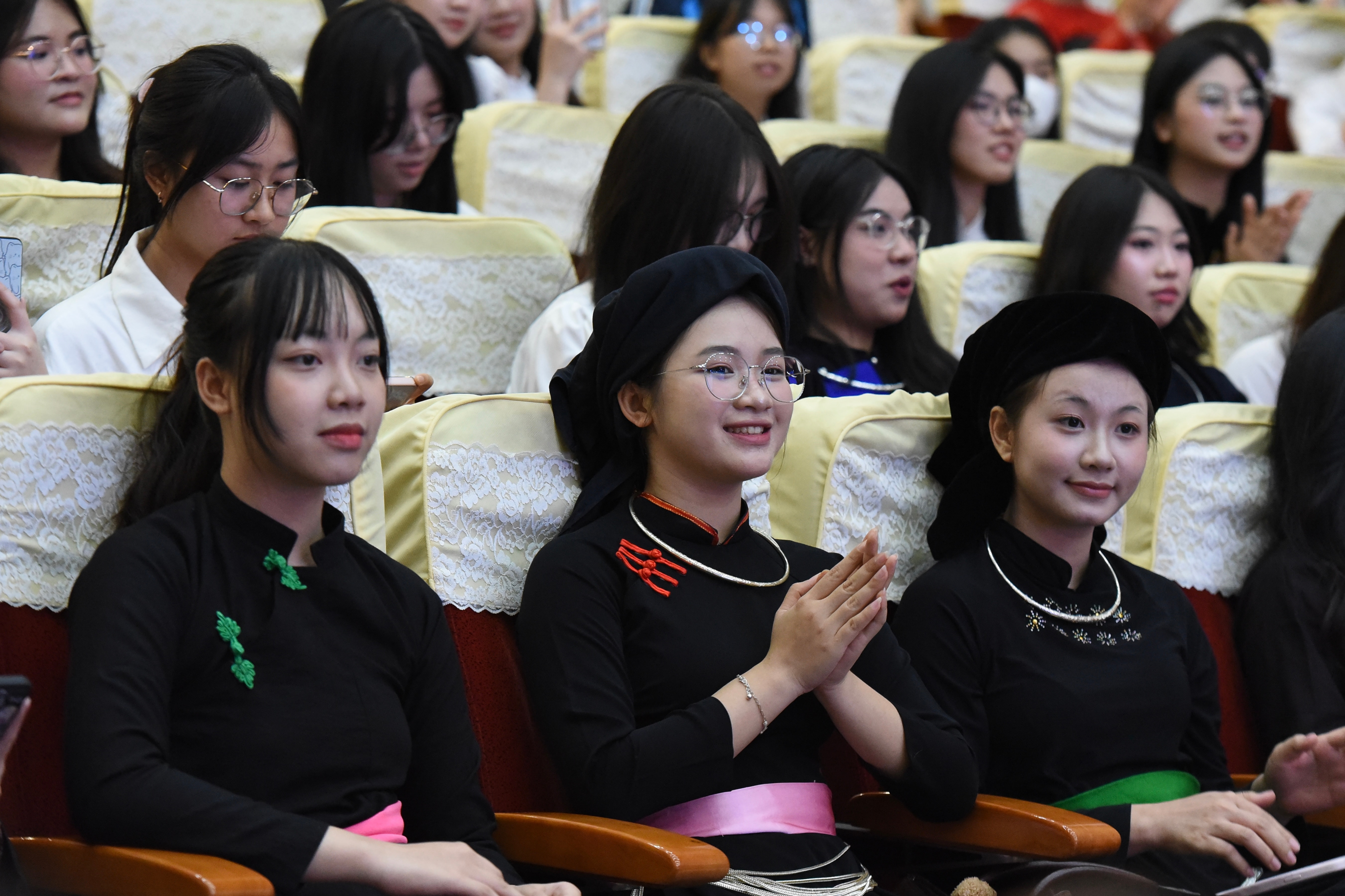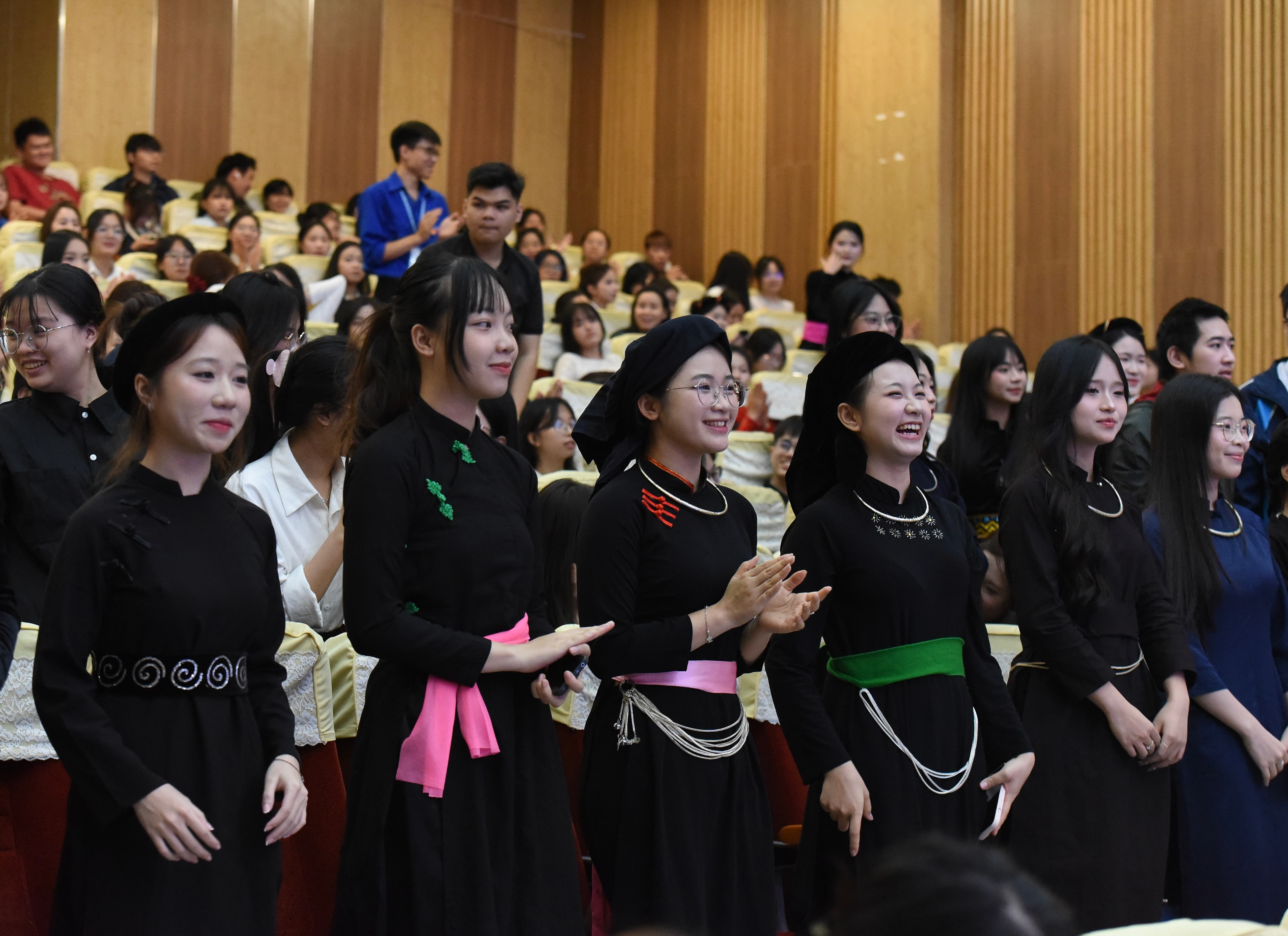 Các sinh viên tham dự hương trình Ngày hội Văn hóa các dân tộc Việt Nam và Trao học bổng Đồng hành với học sinh, sinh viên vùng khó khăn. Ảnh: Xuân Quý
