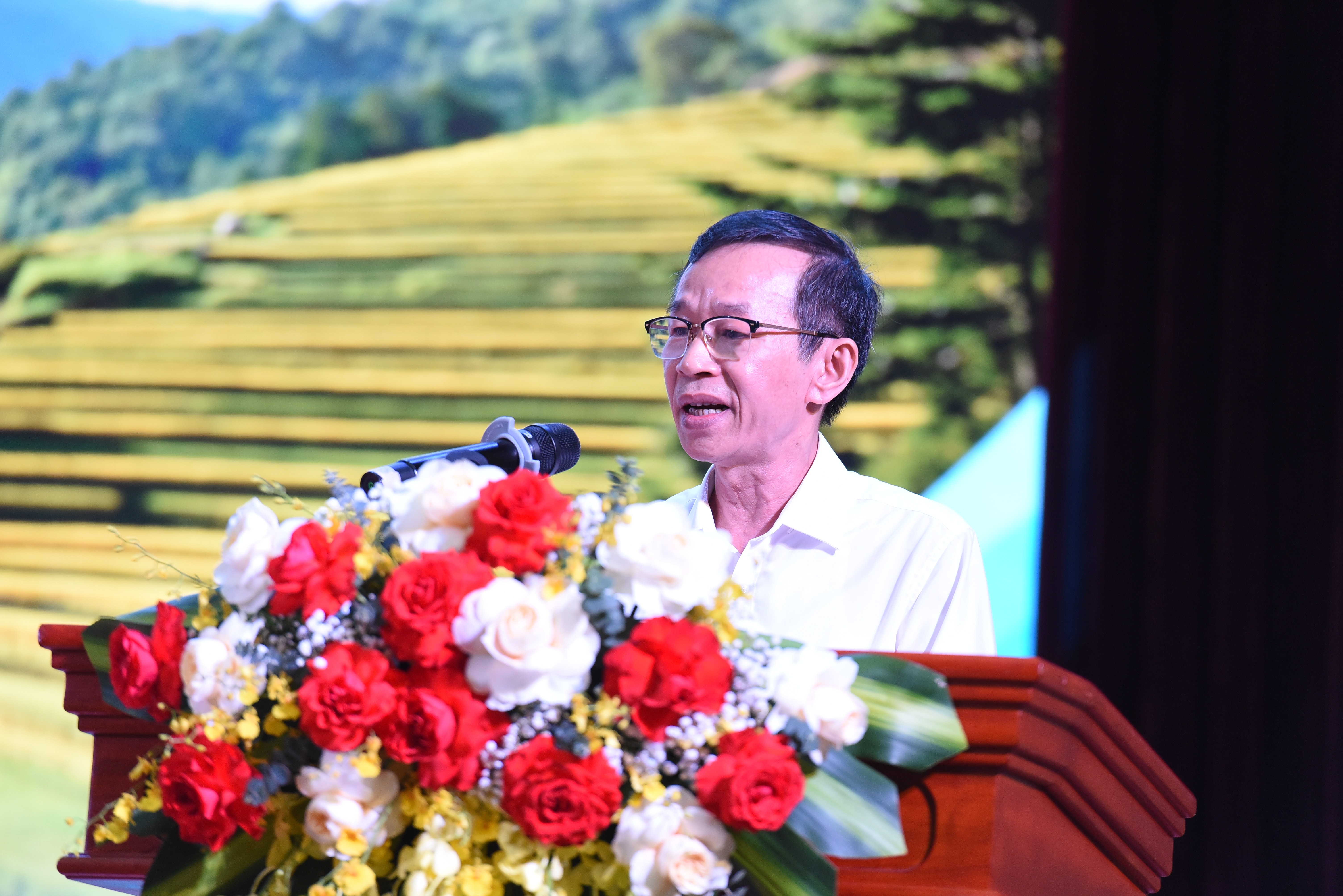 GS.TS Nguyễn Văn Minh - Chủ tịch Hội đồng Học bổng Đồng hành với học sinh, sinh viên vùng khó khăn phát biểu. Ảnh: Xuân Quý