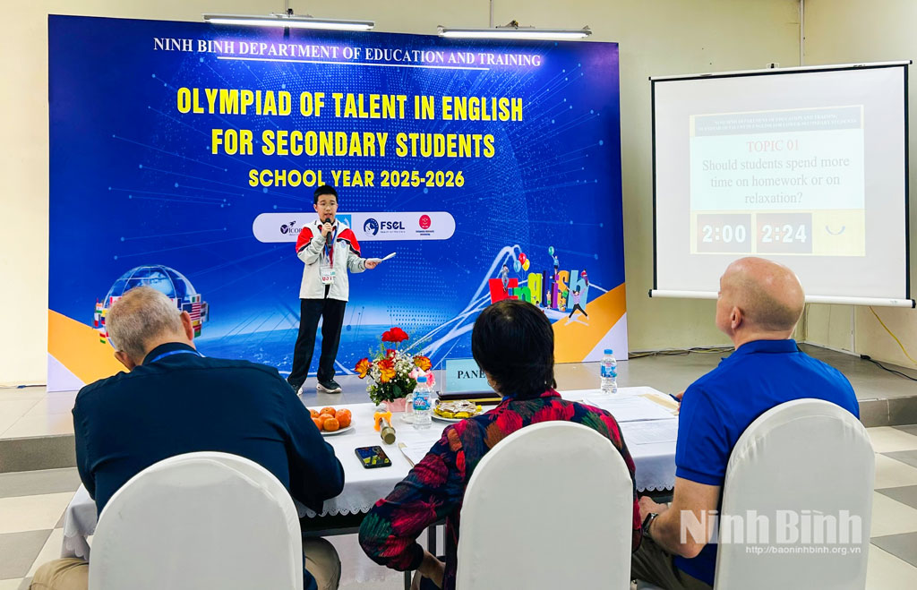 Vòng Chung kết Cuộc thi Olympic “Tài năng Tiếng Anh” cấp THCS năm học 2025 - 2026 diễn ra trong 2 ngày 16, 17/1/2025; lễ tổng kết và trao giải dự kiến được tổ chức vào ngày 9/2/2026 tại Trường THPT chuyên Lương Văn Tụy, phường Hoa Lư.