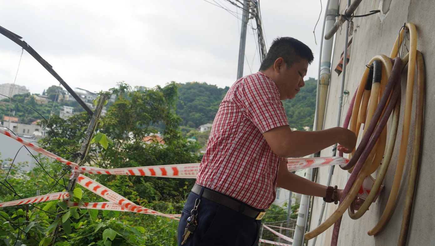 Tại phường Vũng Tàu tiếp tục có mưa lớn liên tục nên phường Vũng Tàu cắt cử lực lượng tuyên truyền người dân không trở lại căn nhà mất an toàn.