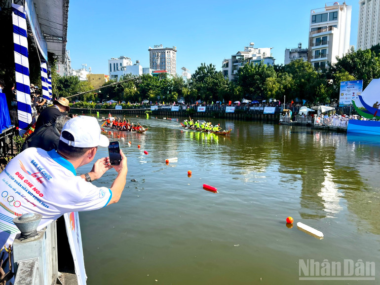 Cuộc đua nhận được sự cổ vũ của hàng nghìn khán giả hai bên bờ kênh Nhiêu Lộc-Thị Nghè.