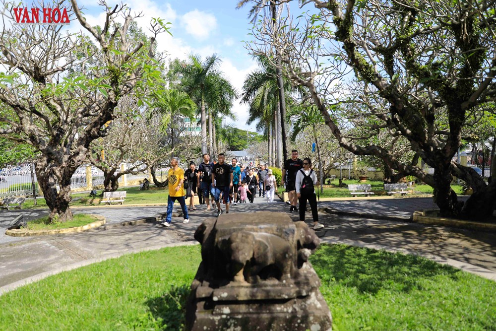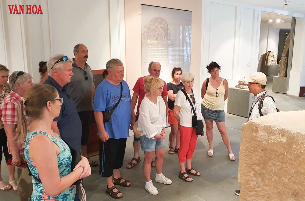 Du khách quốc tế tham quan, tìm hiểu tại Bảo tàng Điêu khắc Chăm