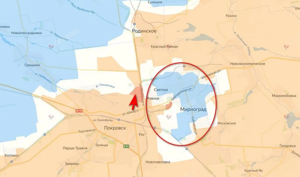 Tuy nhiên, Bộ Tổng tham mưu AFU vẫn chưa cân nhắc đến việc "buông xuôi" hoàn toàn Mirnograd, mặc dù xuất hiện báo cáo về việc các đơn vị đầu hàng tại một số vị trí. AFU dường như vẫn đang hy vọng phá vỡ vòng vây. Trong khi đó, lực lượng phối hợp của quân đội và Vệ binh Quốc gia Ukraine tiếp tục tấn công Rodinske và các khu định cư ở phía bắc Pokrovsk.