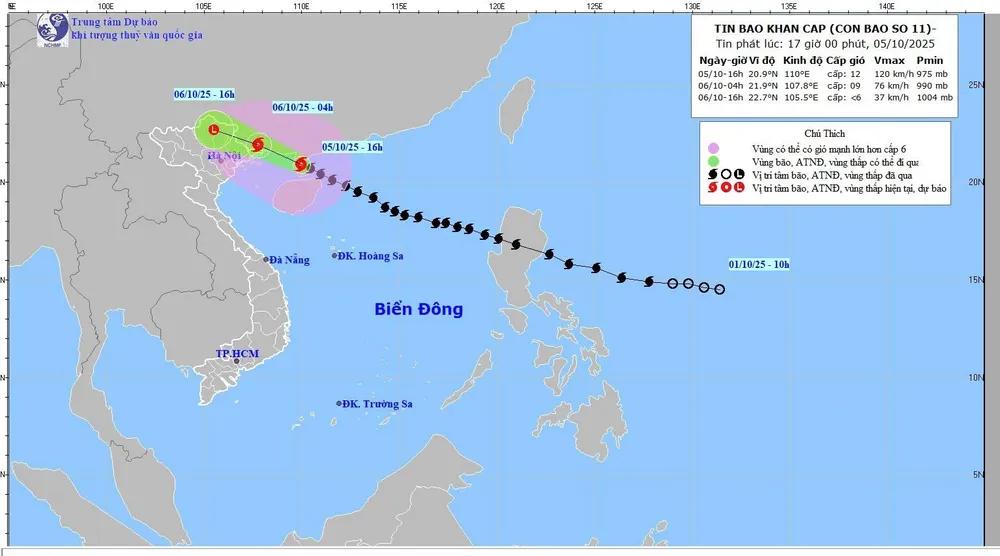 Công văn nêu rõ, theo Trung tâm Dự báo Khí tượng thủy văn quốc gia, do ảnh hưởng của bão số 11, từ đêm nay 5 đến 7-10, ở khu vực vùng núi và trung du Bắc Bộ có mưa to, cục bộ có nơi mưa rất to.