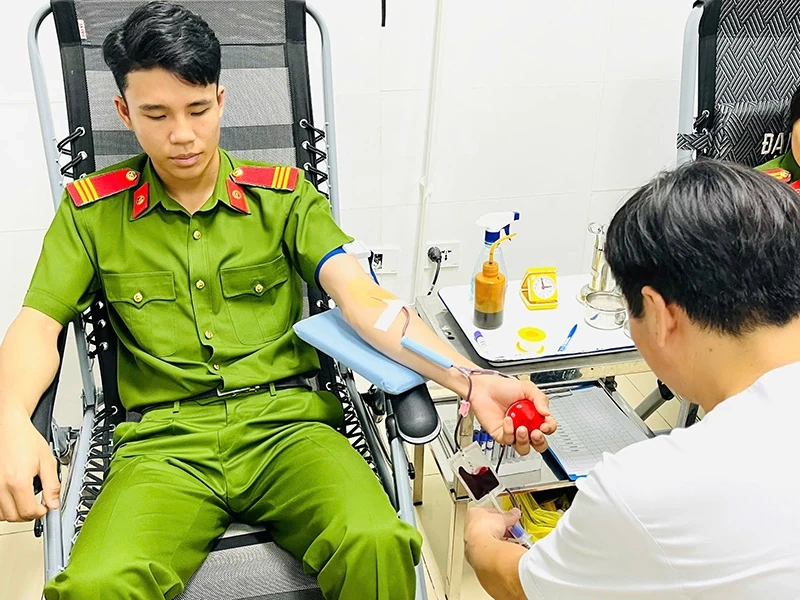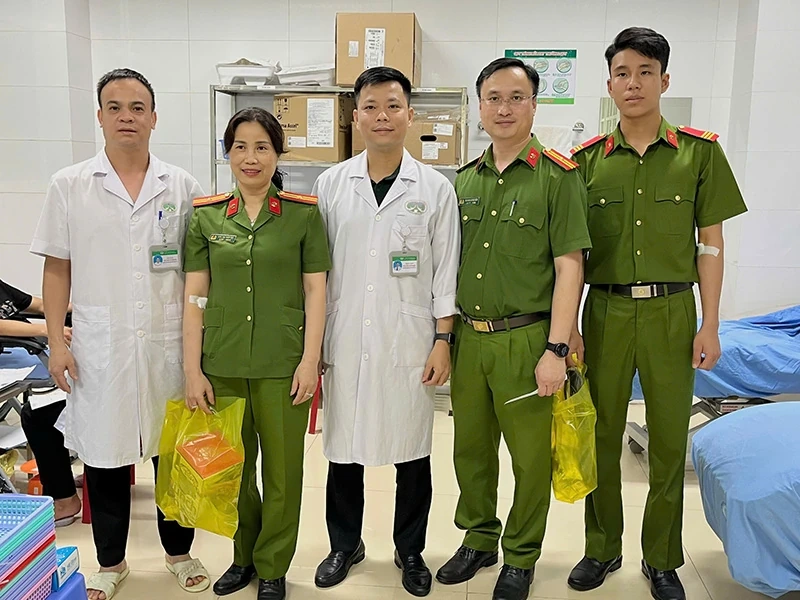 Thiếu tá Lưu Thúy Hà và Trung sĩ Lê Vĩnh Huân, cán bộ Đội Chính trị - Hậu cần, Phòng Cảnh sát cơ động - Công an tỉnh đã có mặt tại bệnh viện, kịp thời hiến 2 đơn vị máu để cứu bệnh nhân qua cơn nguy kịch.