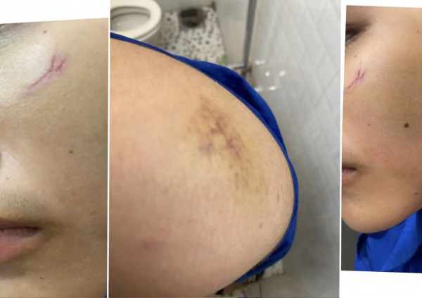 Nam sinh với nhiều vết thương phần mềm trên người sau khi bị 2 đối tượng đánh.