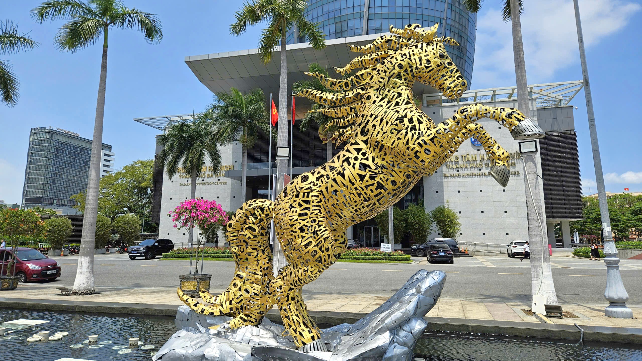 Mô hình Kim mã hợp nhất được lắp đặt trước Trung tâm Hành chính TP Đà Nẵng. Ảnh: TẤN VIỆT