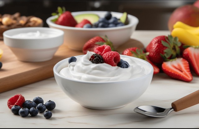 Kết hợp sữa chua với quả mọng để tăng chất xơ và tạo độ ngọt tự nhiên.