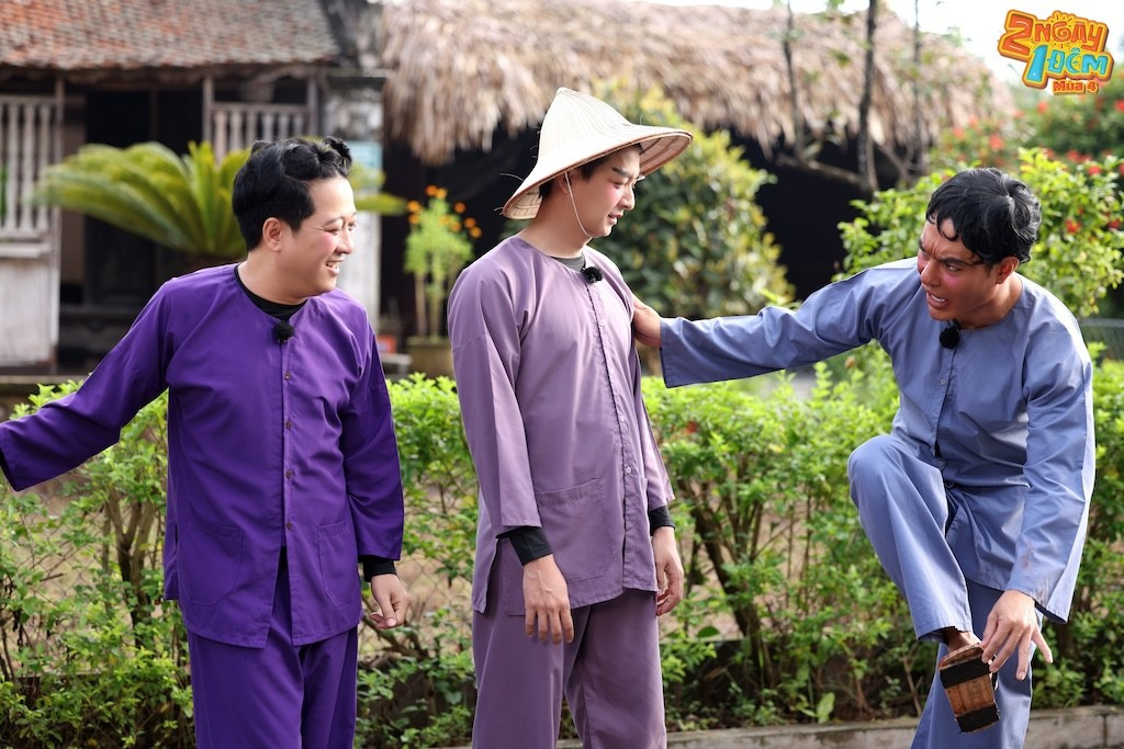 Đi cùng với màn xuất hiện đầy cồng kềnh là tạo hình vừa độc lạ vừa hài hước được lấy cảm hứng từ câu chuyện Chí Phèo - Thị Nở của dàn cast. Mở đầu là cặp đôi “Ngân - Diễm” Kiều Minh Tuấn và Dương Lâm khi cùng song kiếm hợp bích thị phạm cho khách mời cách xuất hiện sao cho ấn tượng.