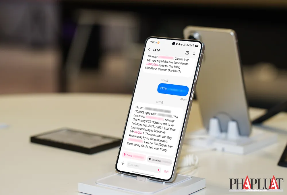 Người dùng có thể tự kiểm tra thông tin thuê bao ngay tại nhà bằng cách soạn tin nhắn theo cú pháp: TTTB và gửi đến 1414. Ví dụ, TTTB 0790900xxxxx gửi 1414.