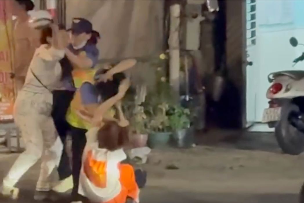 Tối 6-4, mạng xã hội xuất hiện đoạn clip ghi lại cảnh hai người phụ nữ xô xát với nhân viên gác chắn.