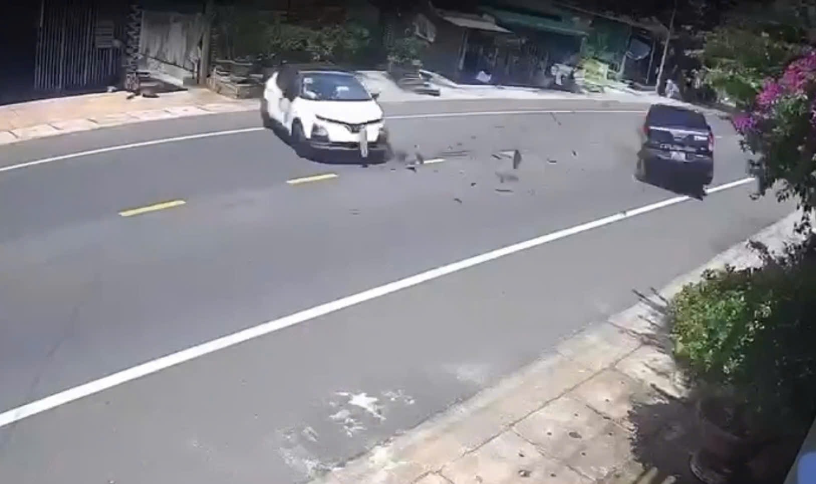 Hình ảnh do camera ghi lại cảnh va chạm giữa 2 ô tô