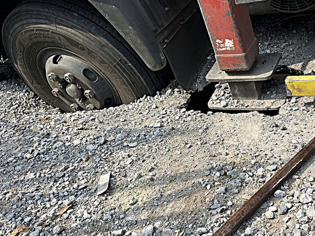 Sau khi ô tô tải mang biển kiểm soát 29E-407.xx sập xuống 'hố tử thần', một xe cứu hộ được điều đến cũng bị sụt xuống một hố khác, khiến bánh trước mắc kẹt, không thể di chuyển. Đáng chú ý, ngay cạnh hai miệng hố mới còn có một hố sụt khác rộng khoảng 2 mét đã xuất hiện từ trước, hiện đã được rào tạm để cảnh báo nguy hiểm.