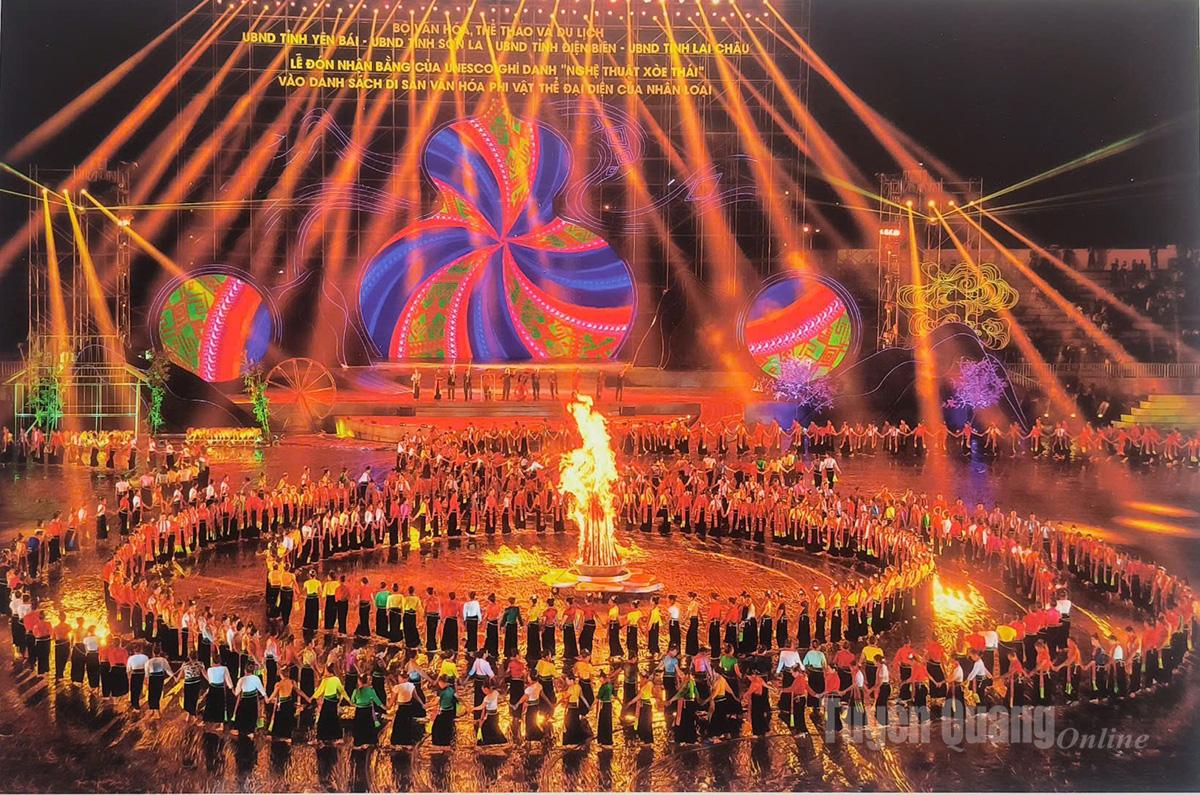 Tác phẩm “Lễ đón nhận Bằng của Unesco ghi danh Nghệ thuật Xòe Thái vào danh sách Di sản văn hóa phi vật thể đại diện của nhân loại” của tác giả Phan Ngọc Anh.