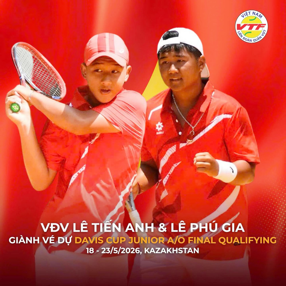 Quan trọng hơn, tấm vé dự vòng loại cuối cùng khu vực mở ra cơ hội lớn để Lê Tiến Anh và Lê Phú Gia tiếp tục khẳng định mình trên đấu trường quốc tế. Giải Davis Cup Junior A/O Final Qualifying Events 2026 sẽ diễn ra từ ngày 18 đến 25/5/2026 tại Kazakhstan.
