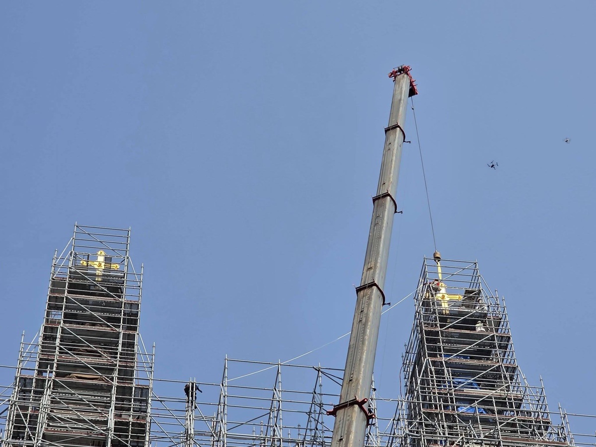 Sáng 19/3, 2 Thánh giá mạ vàng nặng khoảng 400 kg đã được đưa trở lại đỉnh tháp Nhà thờ Đức Bà Sài Gòn, đánh dấu một cột mốc quan trọng trong hành trình đại trùng tu kéo dài gần 10 năm của công trình biểu tượng này.