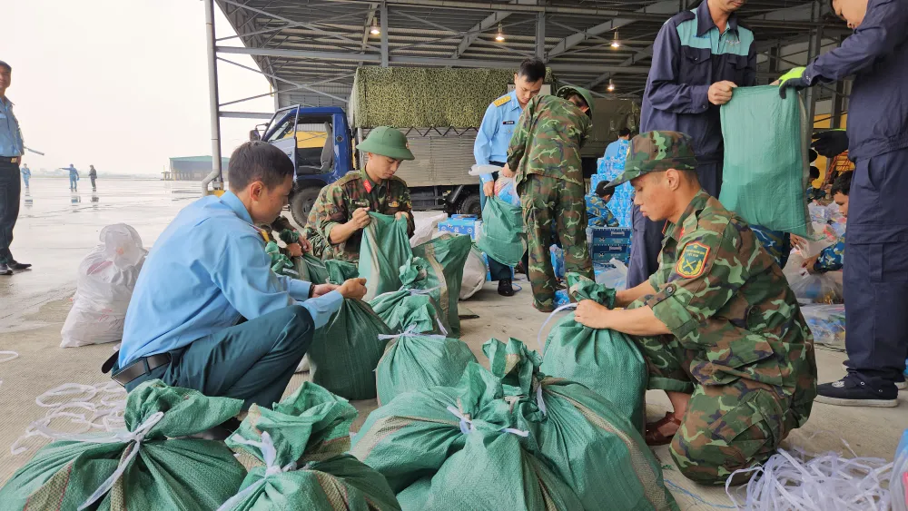 Thông tin từ Sư đoàn 372 cho hay, hai trực thăng mang theo hơn 10 tấn hàng hóa cứu trợ cùng 100 phao tròn. Đây là hàng hóa do Quân khu 5 khai thác bảo đảm, cơ động bằng trực thăng. Tổng cộng có khoảng 20 tấn hàng dự kiến được chở bằng trực thăng.