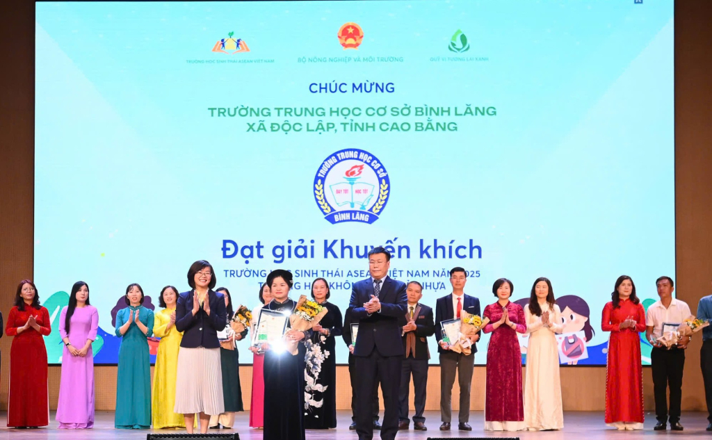 Tỉnh Cao Bằng có 2 trường học đạt giải thưởng gồm: Trường THPT Trùng Khánh, xã Trùng Khánh đạt Giải thưởng sáng tạo; Trường THCS Bình Lăng, xã Độc Lập đạt giải Khuyến khích. Giải thưởng góp phần khẳng định vị thế của giáo dục Cao Bằng trong phong trào xây dựng trường học sinh thái, đồng thời, tạo động lực để các cơ sở giáo dụctrên địa bàn tỉnh đẩy mạnh hơn nữa công tác bảo vệ môi trường trong thời gian tới.