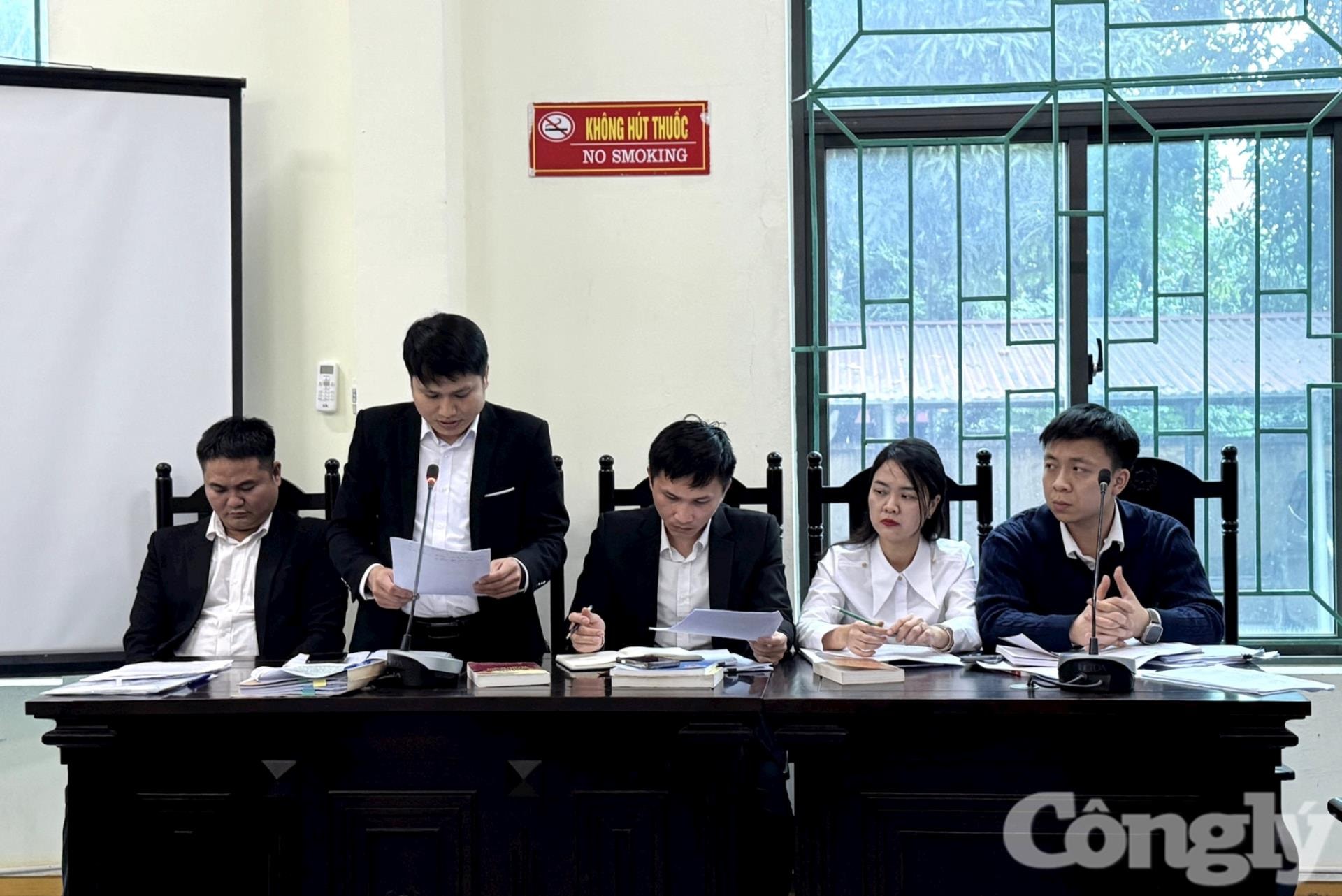 Các luật sư và Trợ giúp viên pháp lý tham gia bào chữa cho các bị cáo.