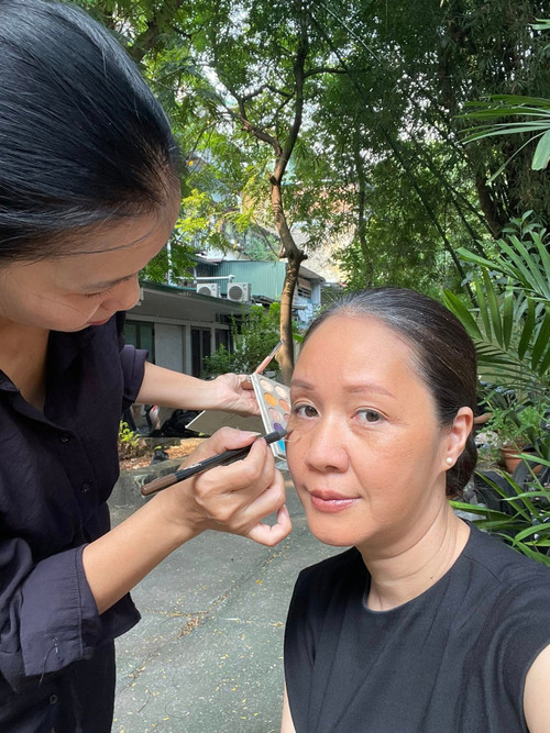 Mai Huê được hóa trang để trông già hơn khi lên phim.