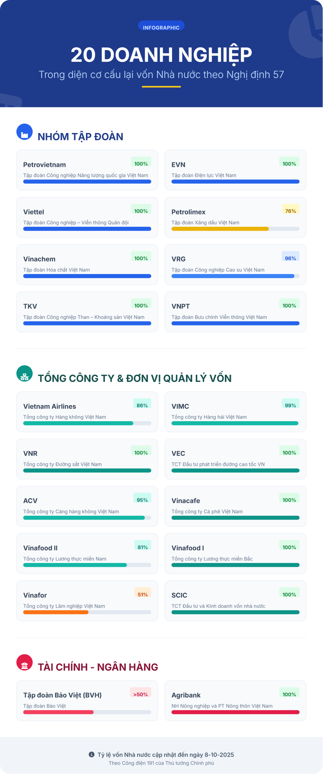 Nghị định 57 có hiệu lực từ ngày 13-2-2026, đồng thời tại Phụ lục III kèm theo đã xác định rõ 20 doanh nghiệp Thủ tướng Chính phủ quyết định thực hiện cơ cấu lại vốn nhà nước. Ngoài danh sách này, các trường hợp phát sinh khác sẽ do Thủ tướng xem xét, quyết định.