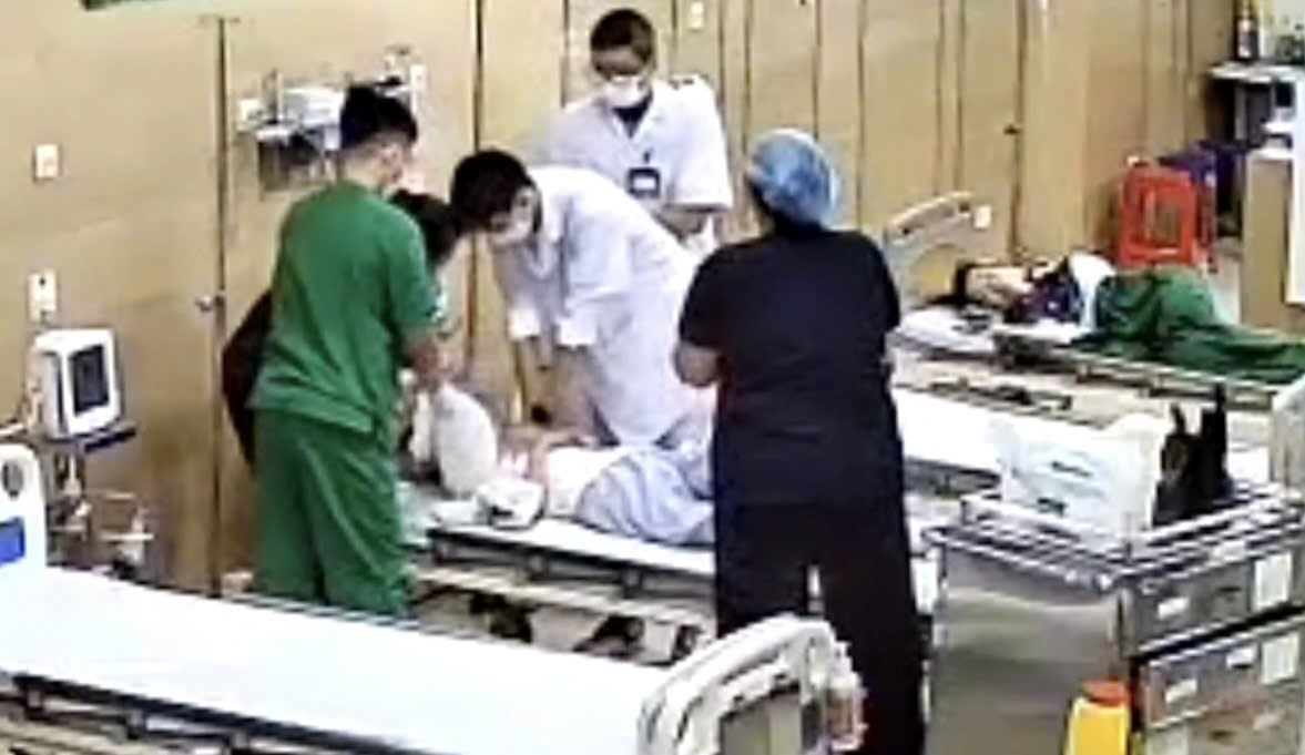 Các bác sĩ tiến hành cấp cứu ngừng tuần hoàn cho bệnh nhân. Ảnh: Đặng Thanh