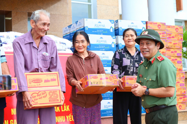 Lô hàng đã được đoàn công tác của Bộ Công an do Thiếu tướng Nguyễn Hồng Nguyên, Phó Chánh Văn phòng Bộ Công an, Phó Trưởng Ban Chỉ huy Phòng thủ dân sự Bộ Công an làm Trưởng đoàn trực tiếp mang xuống địa bàn cơ sở để trao tận tay đồng bào. Cùng tham gia đoàn có Đại tá Võ Duy Tuấn, Phó Giám đốc, Thủ trưởng Cơ quan CSĐT Công an tỉnh Đắk Lắk cùng đại diện các Cục nghiệp vụ Bộ Công an, Trung đoàn Cảnh sát cơ động Nam Trung bộ thuộc Bộ Tư lệnh Cảnh sát cơ động Bộ Công an...
