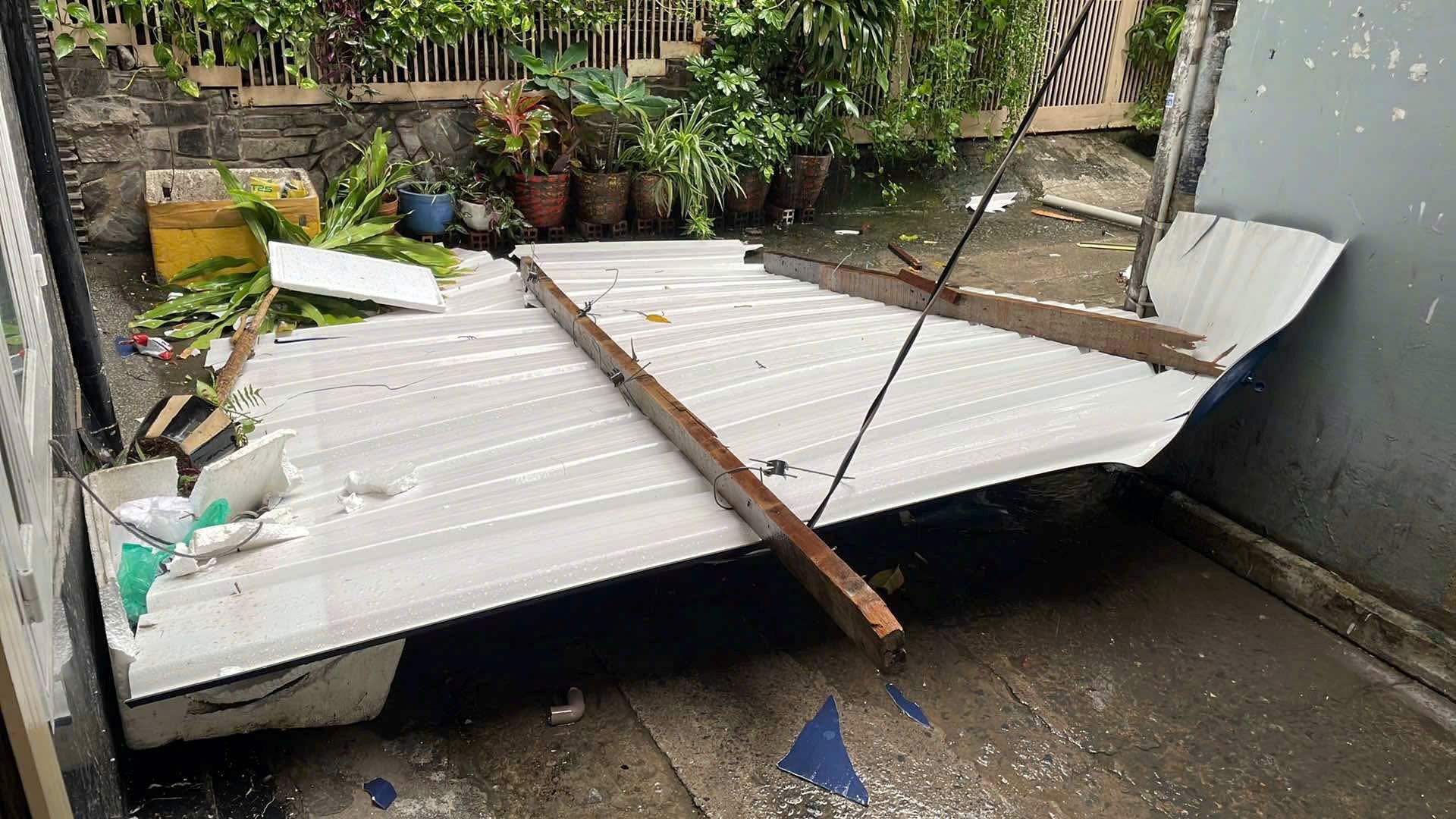 Mưa đông làm hư hỏng mái tôn nhà dân.