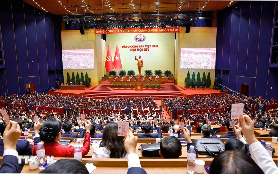 Đại hội biểu quyết thông qua danh sách bầu cử Ban Chấp hành Trung ương Đảng khóa XIV. Ảnh: TTXVN