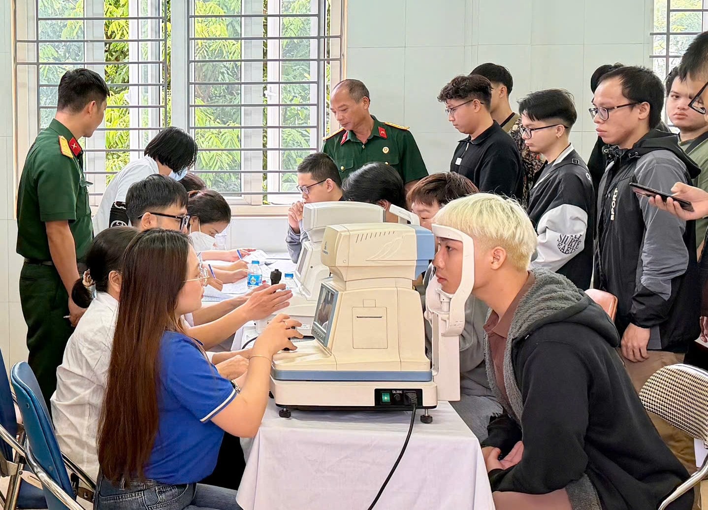 Tại nơi khám sơ tuyển, Ban tổ chức phân công các lực lượng tổ chức tiếp đón, hướng dẫn, đồng thời bố trí 2 dãy khám hợp lý, khoa học. Ban Chỉ huy quân sự phường bố trí máy đo tật khúc xạ nhằm bảo đảm kết quả khám được chính xác hiệu quả.