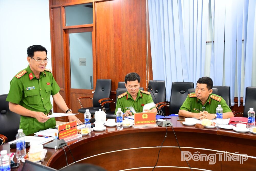 Đại tá Nguyễn Văn Thay, Phó Giám đốc Công an tỉnh, Phó Chủ tịch Hội đồng phát biểu.