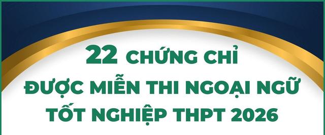 Theo Quy chế thi tốt nghiệp trung học phổ thông và có hiệu lực từ ngày 24/4/2026, có 22 chứng chỉ được miễn thi môn Ngoại ngữ trong xét tốt nghiệp THPT, tăng 2 chứng chỉ so với năm trước.