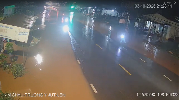 Khoảng 21 giờ 25 ngày 3/10, quốc lộ 27 đoạn qua xã Dray Bhăng bị ngập sâu do mưa lớn, gây ùn tắc giao thông, một số phương tiện bị chết máy.