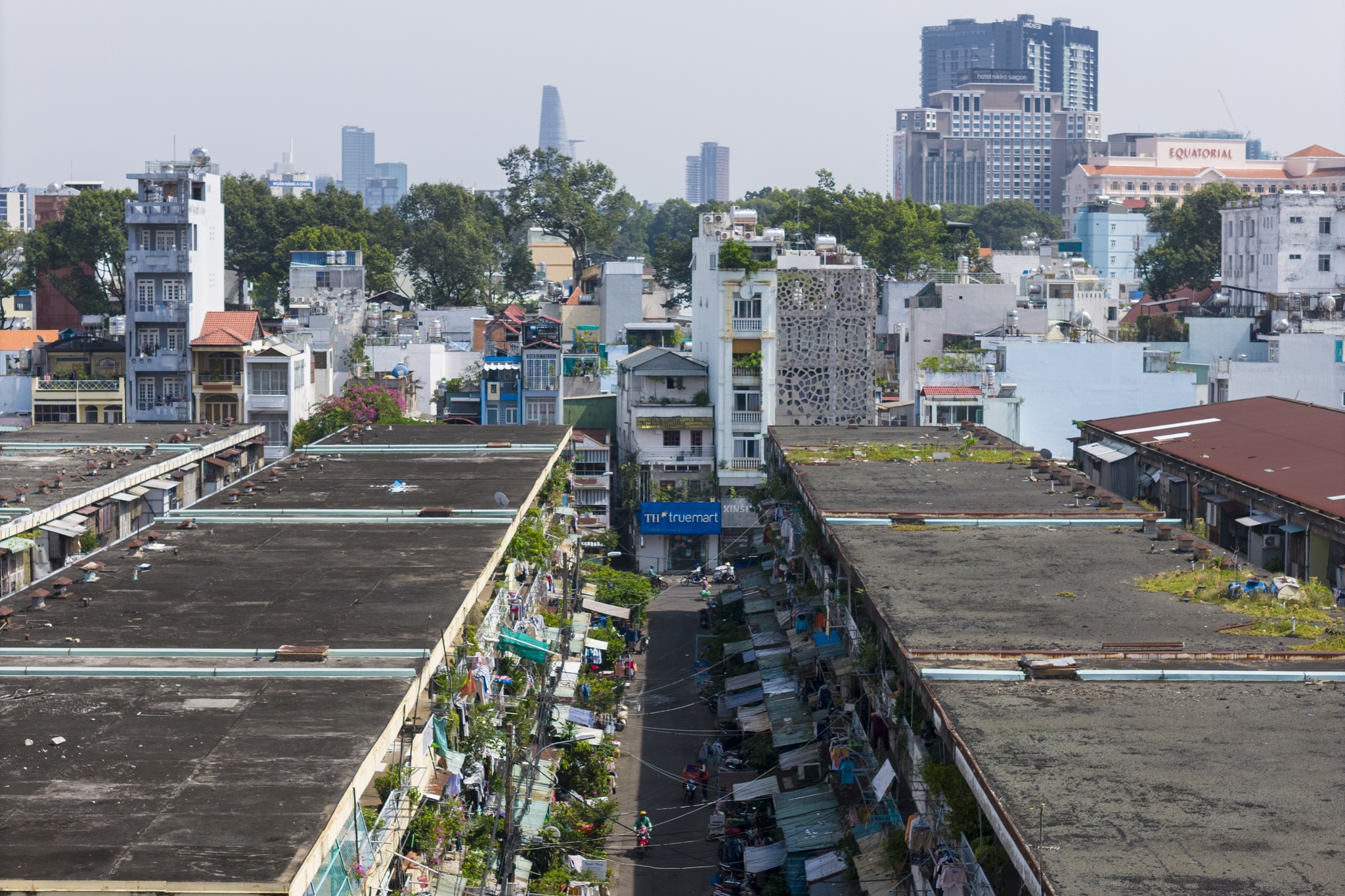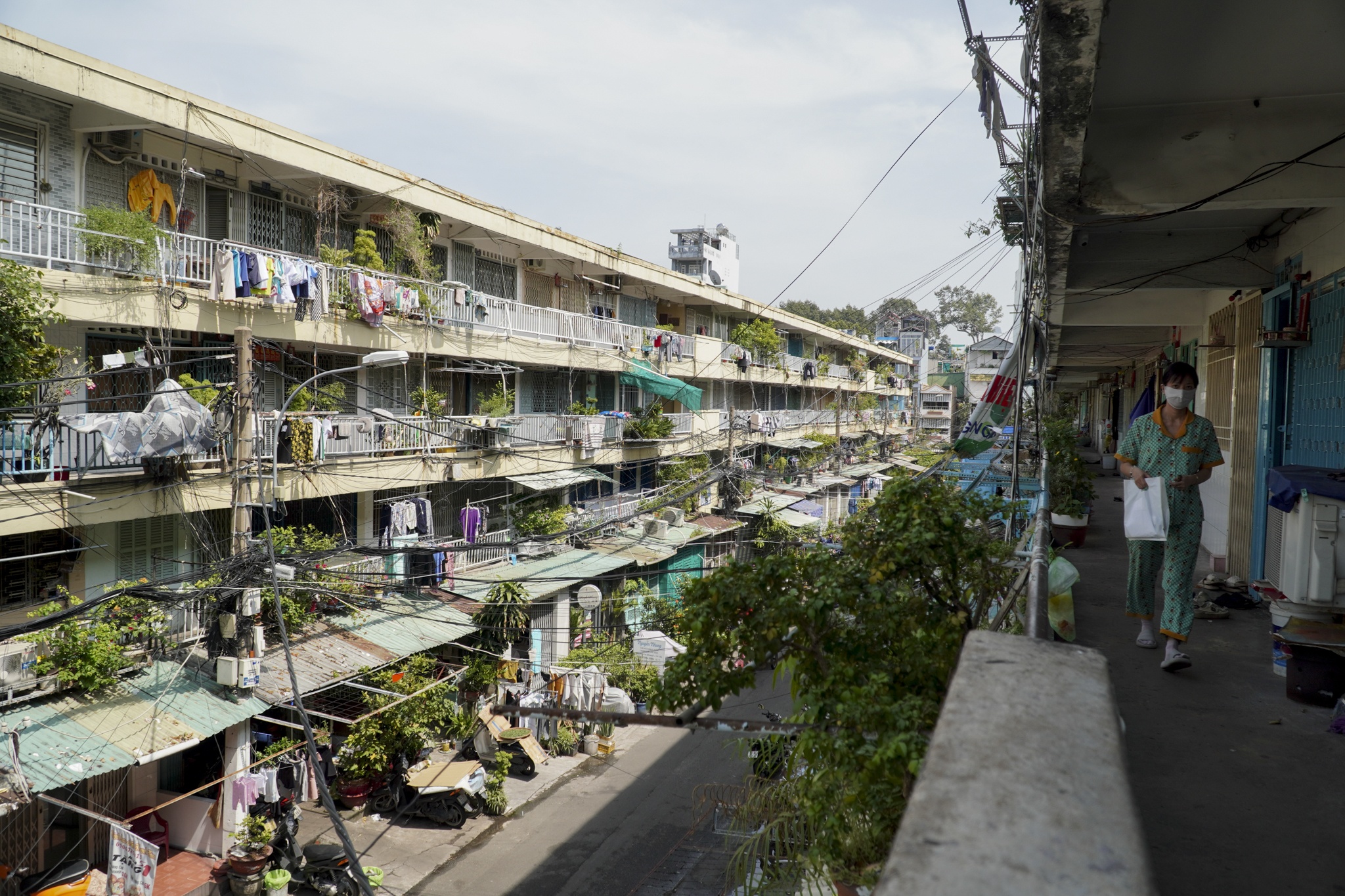 Phần lớn chung cư ở phường Vườn Lài được xây dựng trước năm 1975, ít chung cư lớn, hiện đại. Đơn cử như chung cư Ấn Quang (cách 700 m) được xây dựng từ năm 1968, hiện cũng được xếp loại C, cần được nâng cấp, cải tạo và xây mới. Ảnh: Khương Nguyễn.