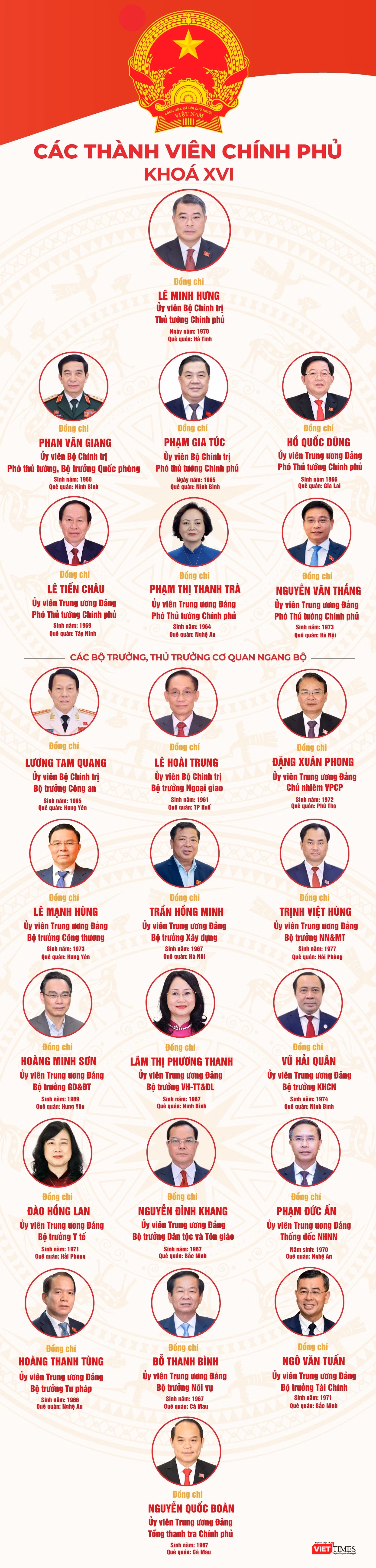 Chân dung các thành viên Chính phủ nhiệm kỳ 2026 - 2031