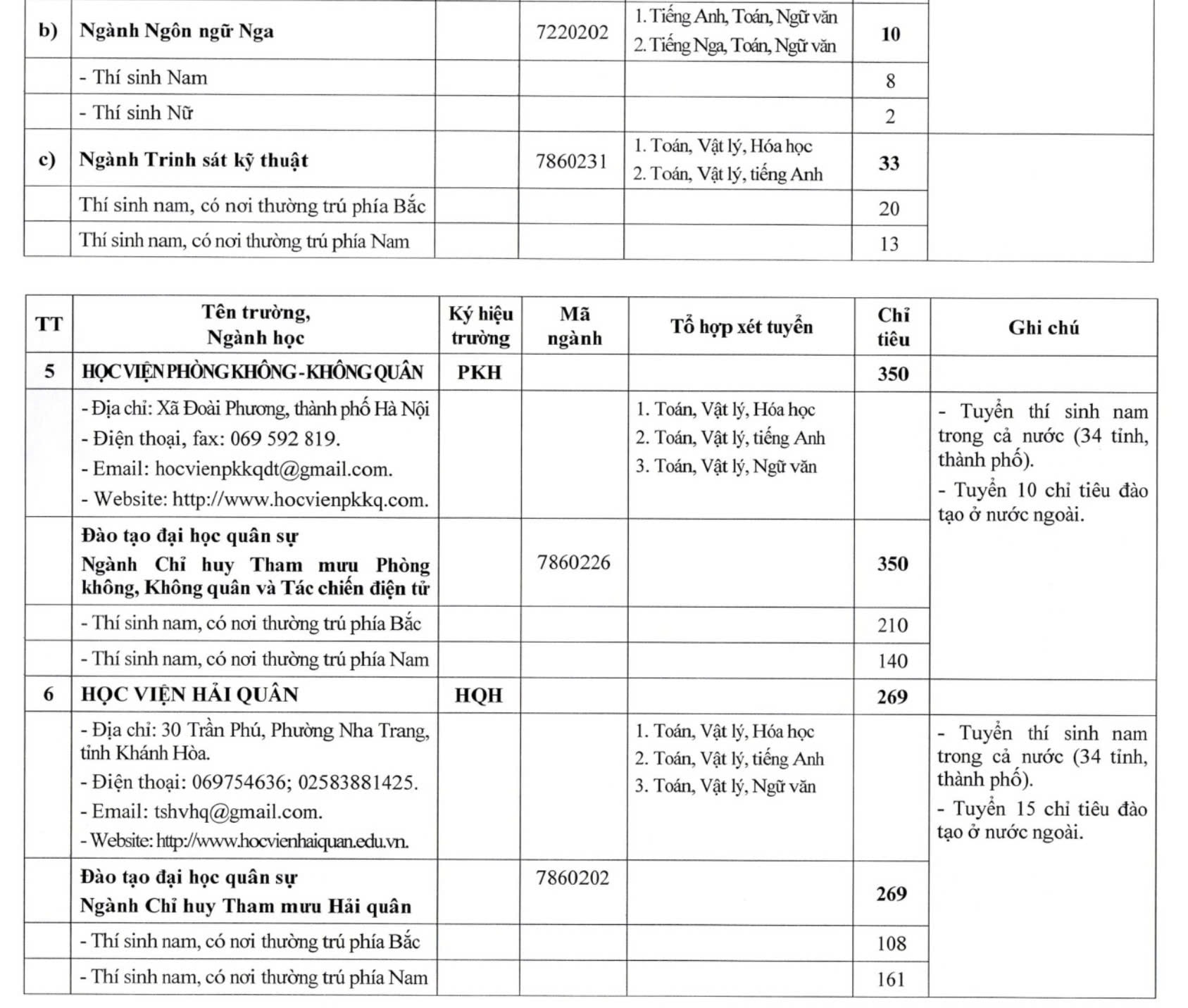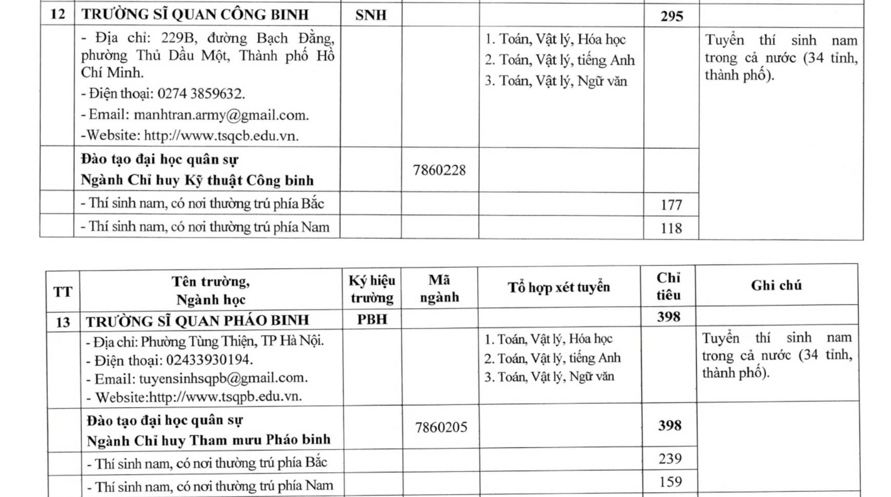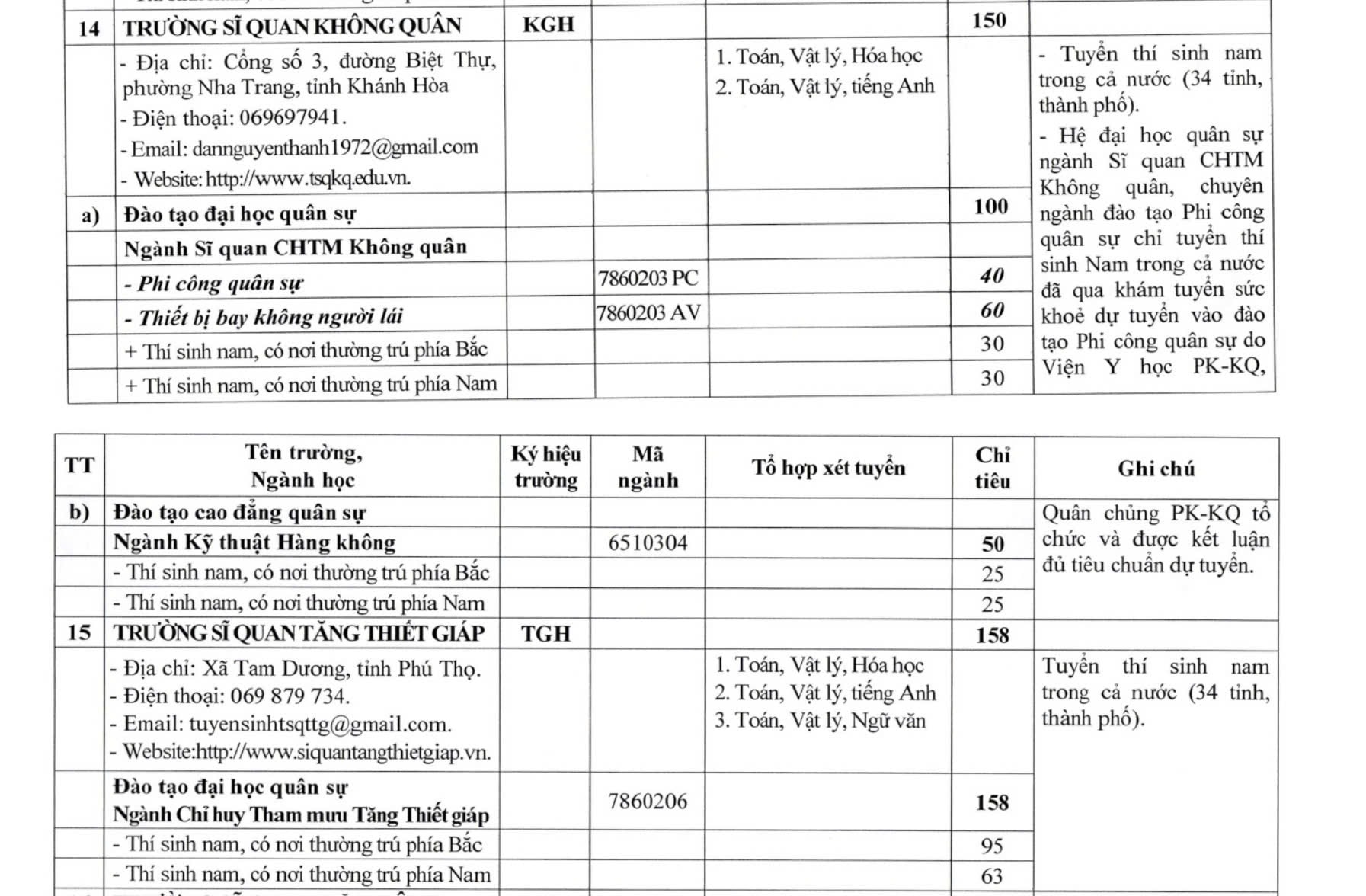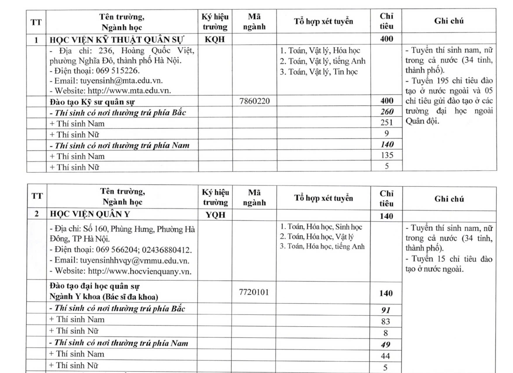 Năm 2026, 23 học viện, trường sĩ quan trong Quân đội tuyển sinh hơn 5.400 chỉ tiêu đào tạo đại học và cao đẳng hệ quân sự chính quy, tăng khoảng 1.000 chỉ tiêu so với năm 2025.
