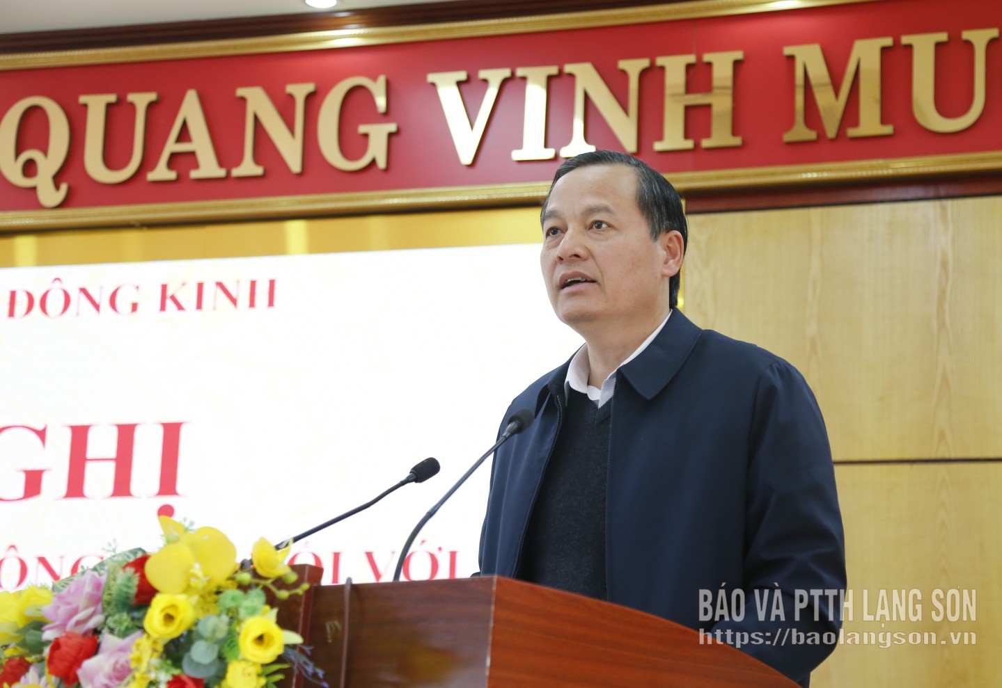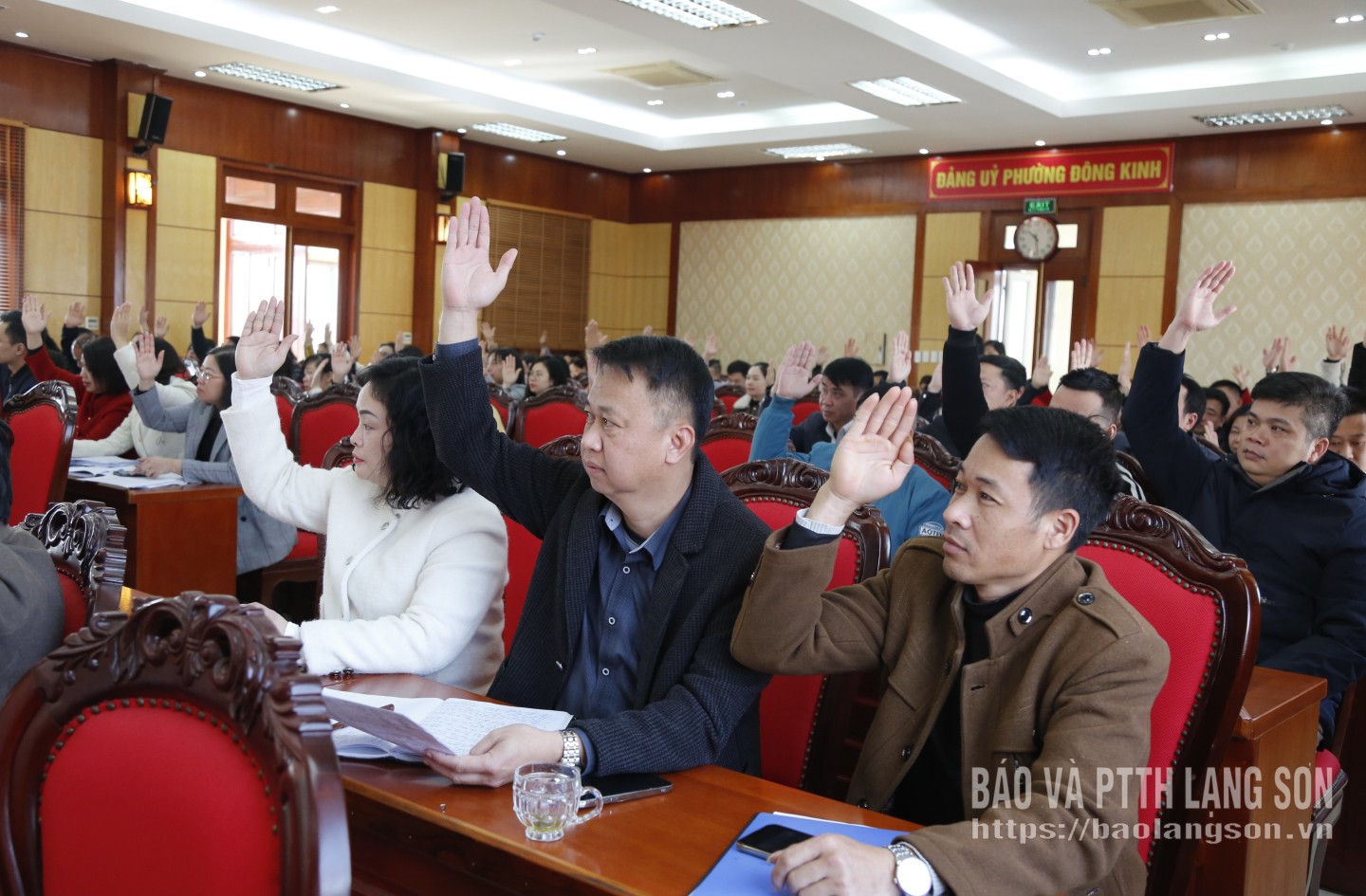 Phát biểu kết luận hội nghị, đồng chí Phùng Quang Hội, Ủy viên Ban Thường vụ Tỉnh ủy, Bí thư Đảng ủy phường Đông Kinh đề nghị các cơ quan, tổ chức, đơn vị được giao nhiệm vụ tiếp tục triển khai các công việc theo tiến trình của công tác bầu cử; làm tốt công tác tuyên truyền trong cơ quan, đơn vị để tạo sự đồng thuận, nhất trí cao và nhất quán trên tinh thần chỉ đạo về công tác nhân sự trong bầu cử đại biểu HĐND phường nhiệm kỳ 2026 - 2031. Qua đó, góp phần vào sự thành công của cuộc bầu cử đại biểu Quốc hội và HĐND các cấp sắp tới.